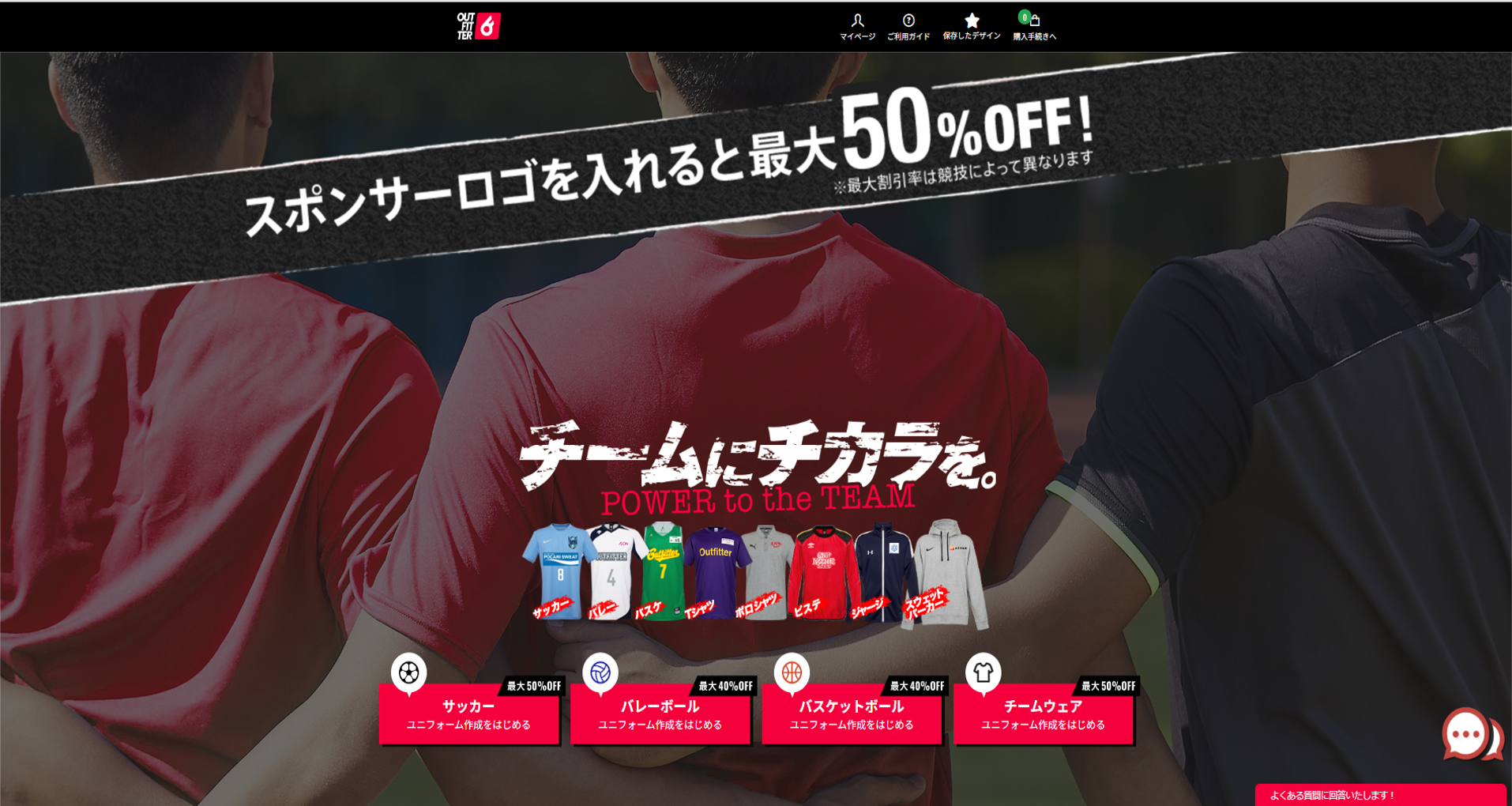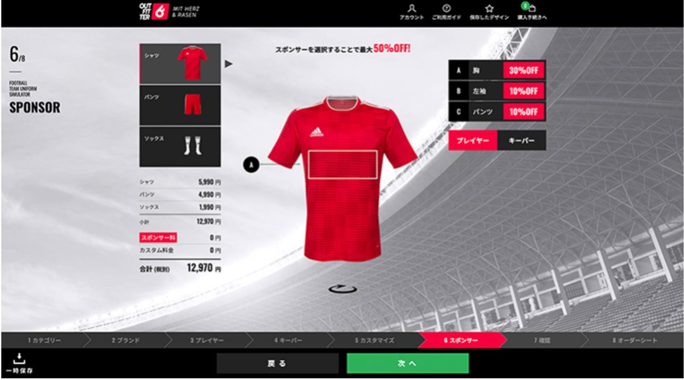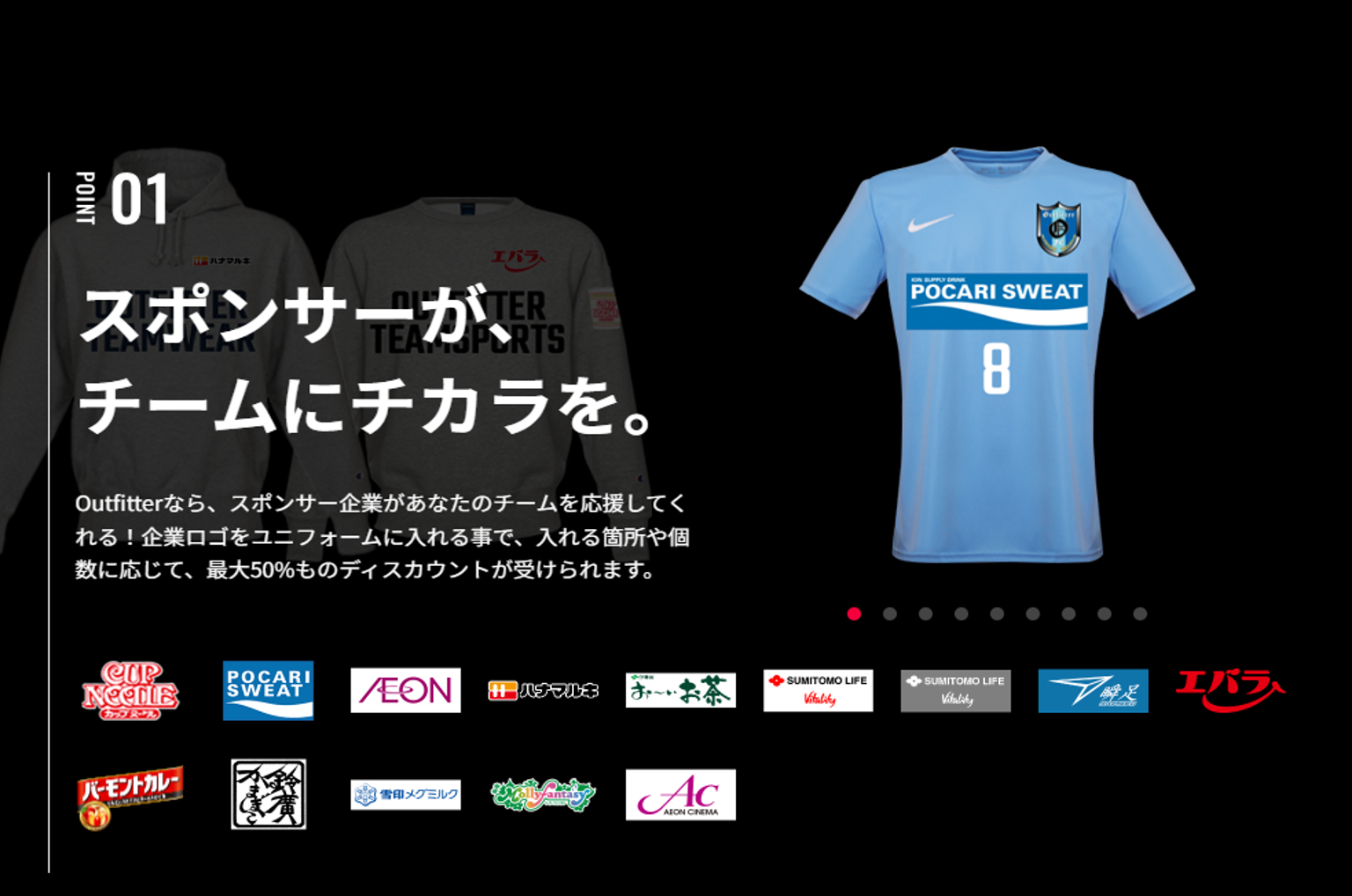 「Outfitter」は、お客さまが選んだスポンサー企業のロゴを印字したオリジナルユニフォームをオンラインで