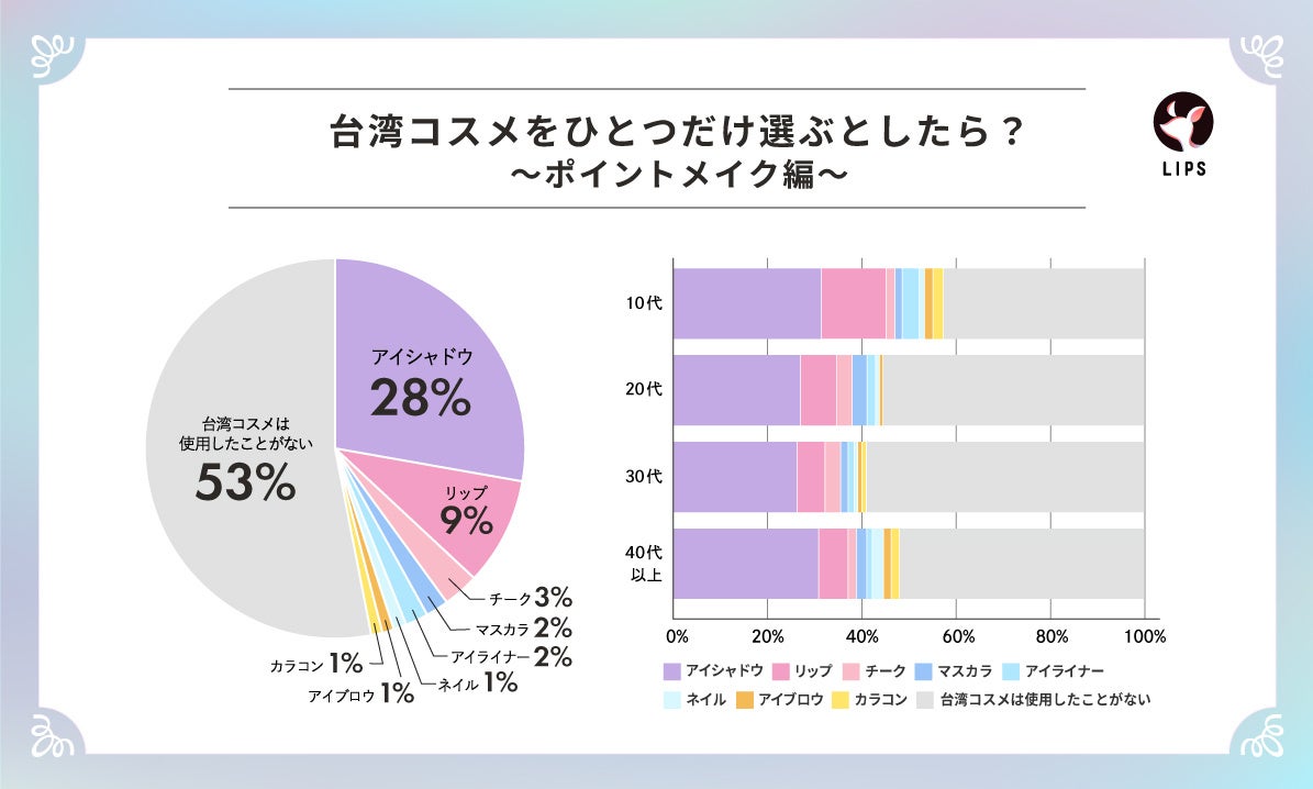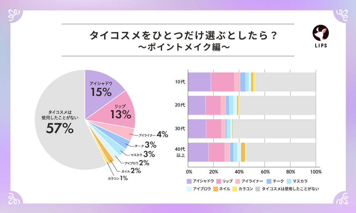 全体の約3割の人がアイシャドウを選択。次いで、10代の若い世代を中心に、リップへの票も集まる結果となりました。
