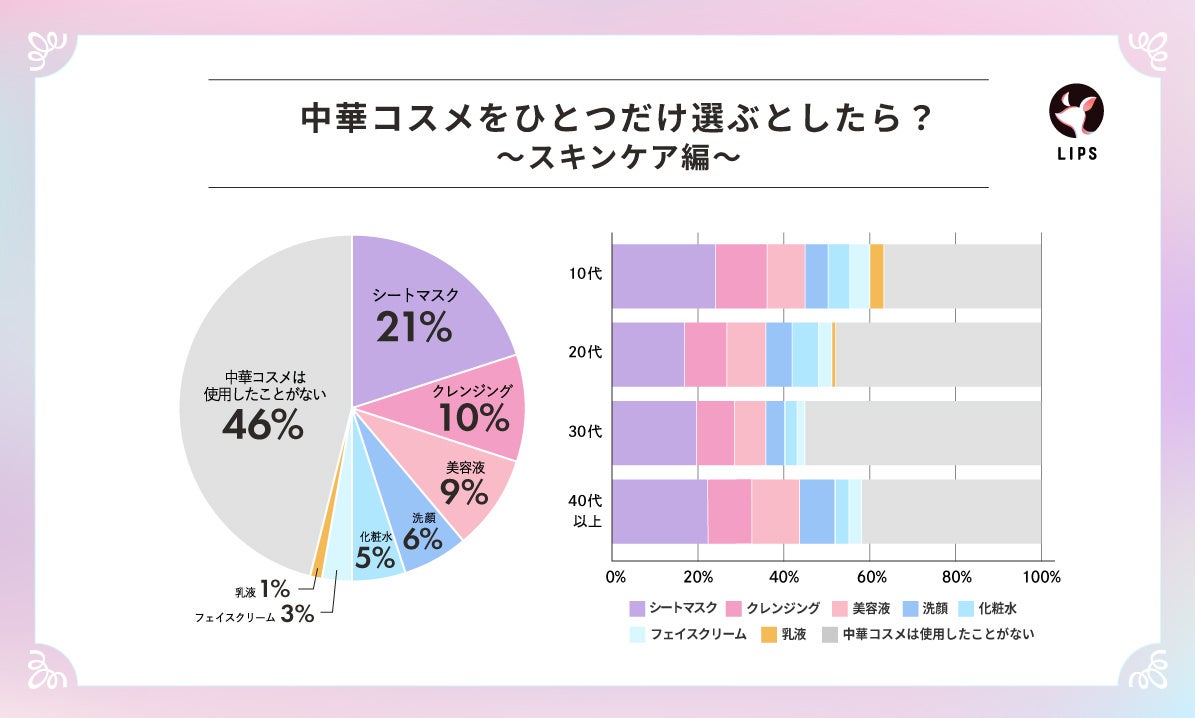 中華コスメのスキンケアについて、自然派で成分にこだわっているというイメージを抱く人が多いことがわかりました。また、第2の韓国コスメのシートマスクとなりうるアイテムを発掘するような感覚で、さまざまなシートマスクをお試しする人が一定数いるようです。