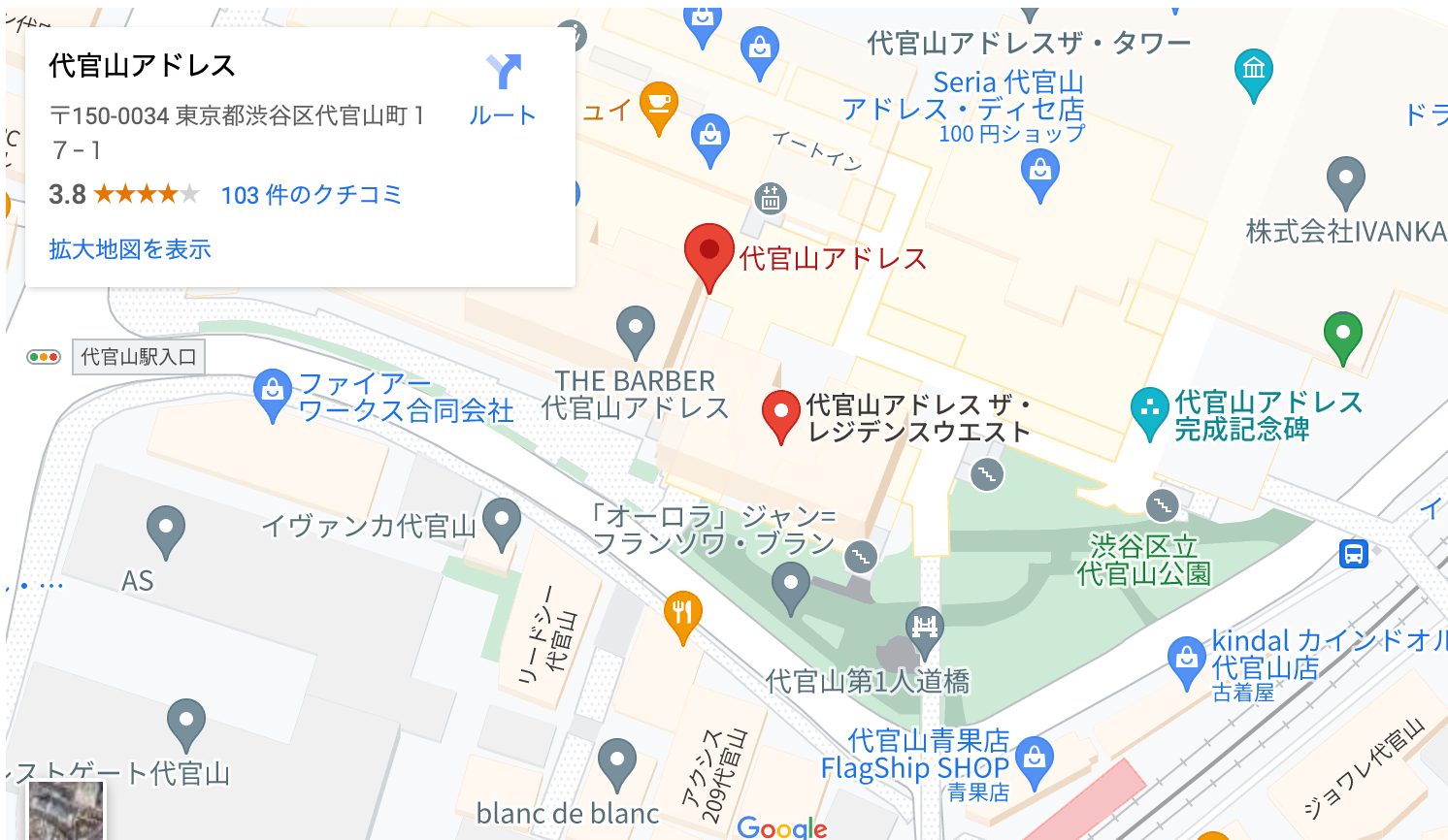 住所: 渋谷区代官山町17-4 代官山アドレス spaceA (代官山駅徒歩1分)