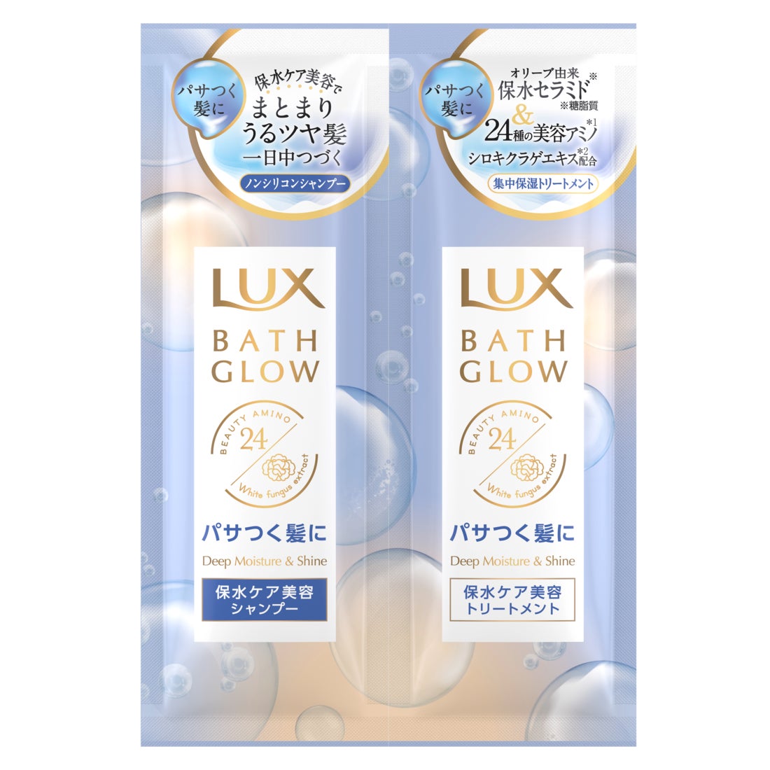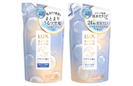 そんなバスグロウ シリーズの「モイスチャー&シャイン」をアップデートした新製品「ラックス バスグロウ ディープモイスチャー&シャイン」を9月18日(月)より全国で発売します。うるおいの機能性を高めた保水ケア美容シャンプーで、一日中続く洗いたてのようなうるツヤ髪をお楽しみください。
