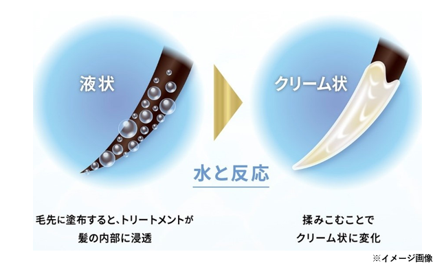 【特 長】毛先に塗布することで、液体状のトリートメントが髪の内部