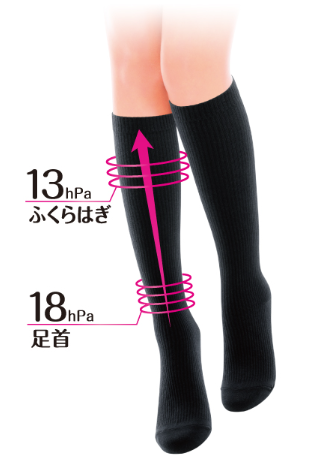 足首18hPa、ふくらはぎ13hPaで、スッキリ細見せ