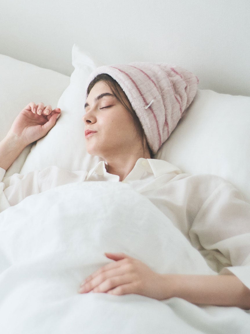 デザインやパターンのノウハウを持つジェラート ピケと、着用することで肌を美しく整える着用する化粧品「ラフィナン®」を開発した帝人フロンティアがタッグを組むことで、肌触りの良い素材で心地よい眠りと同時に、”ながら美容で”気軽に髪とお肌のケアをも叶える計2型の”ヘアケアタイプが誕生いたしました。