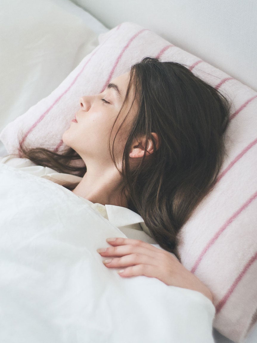 ■本体は毛足が柔らかいモール糸を使用したソフトなニット生地のため、肌触りのよい、ふんわりとした使用感を実現し、睡眠などで長時間使用しても快適です。