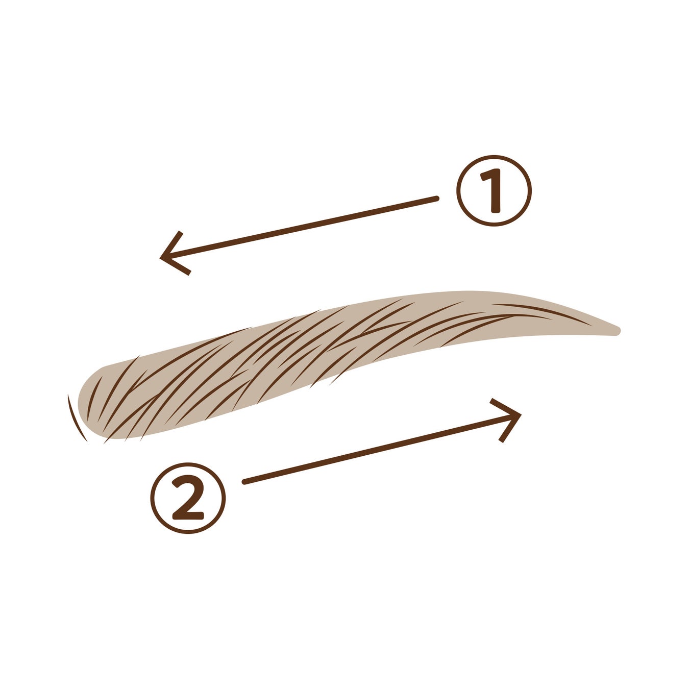②眉頭から眉じりまで毛流れに沿って塗り、全体の毛流れを整えます。