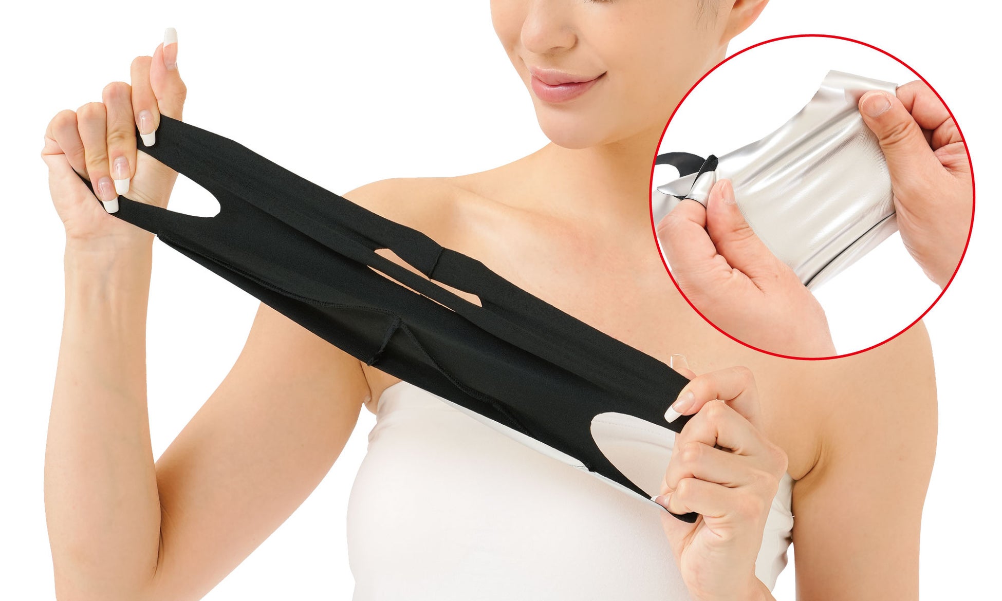 引き上げながら着用することで、フェイスライン・あごのお肉をグイっと持ち上げキープします♪