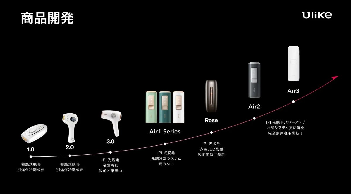 Ulike(ユーライク)は、2013年に創業した欧米や韓国、日本など世界17カ国で光美容器を販売している人気の家庭美容器メーカー。Ulikeは、エステサロンだけでなく、ご自宅でムダ毛ケアを完了できるように、ケア中やケア後のトラブルを解決し、すべての女性に自信を持って美しさを楽しんでもらうことを目指しています。革新的な技術と研究開発を中心に事業展開をし、消費者に科学的で安全、かつ効果的なムダ毛ケアを自宅で提供可能となりました。創業以来、日本、米国、中国、欧州、韓国を含む100以上のグローバル特許を取得し、10年以上にわたりムダ毛ケアにこだわり続け、Sephora、Lotte免税店、CDFGなど大手美容ブランドとコラボし、17カ国で400万台の商品販売実績があります。Ulikeの光美容器には、独自に開発された「Sapphire Ice-Cooling(サファイア冷感技術)」が搭載されており、ムダ毛ケア中の痛みの軽減からケア後のクーリングケアまで1台でこなせると評判の商品になっています。