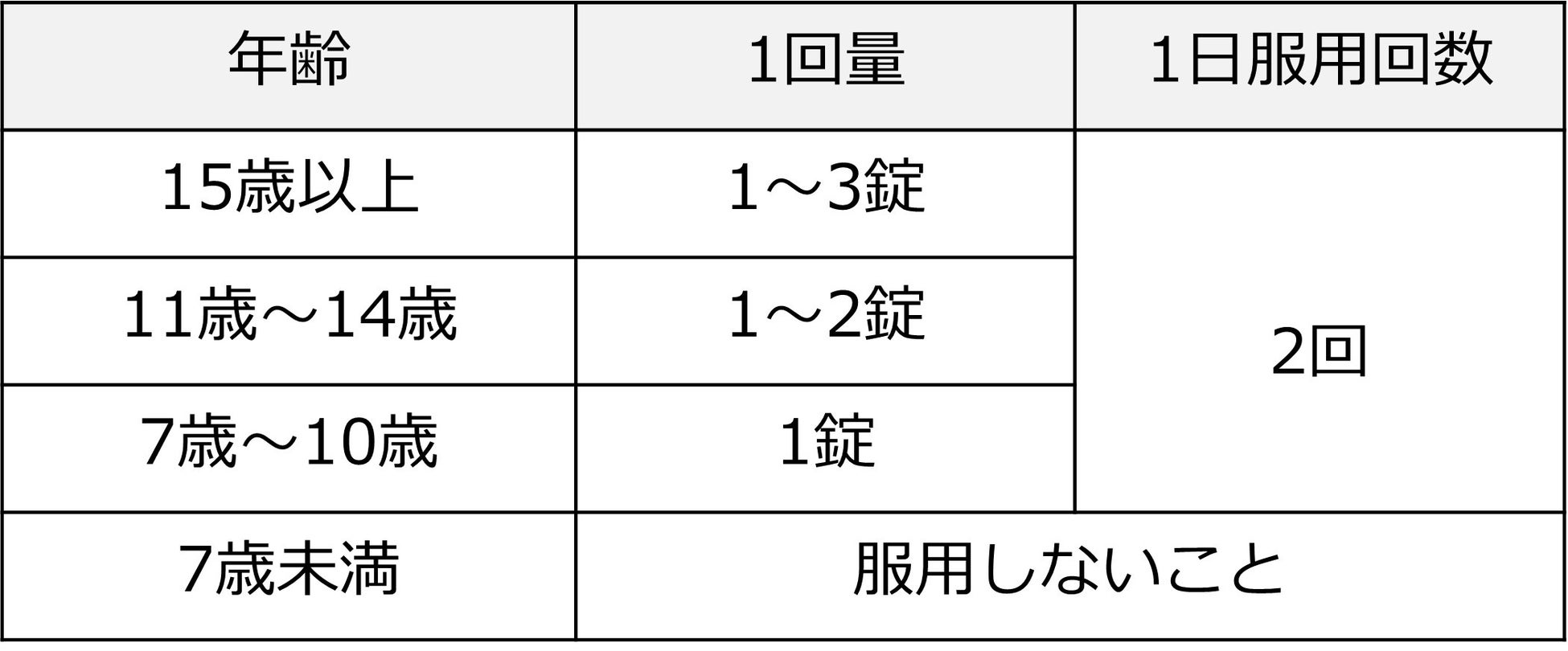 次の量を、食後すぐに水またはお湯で、かまずに服用すること。
