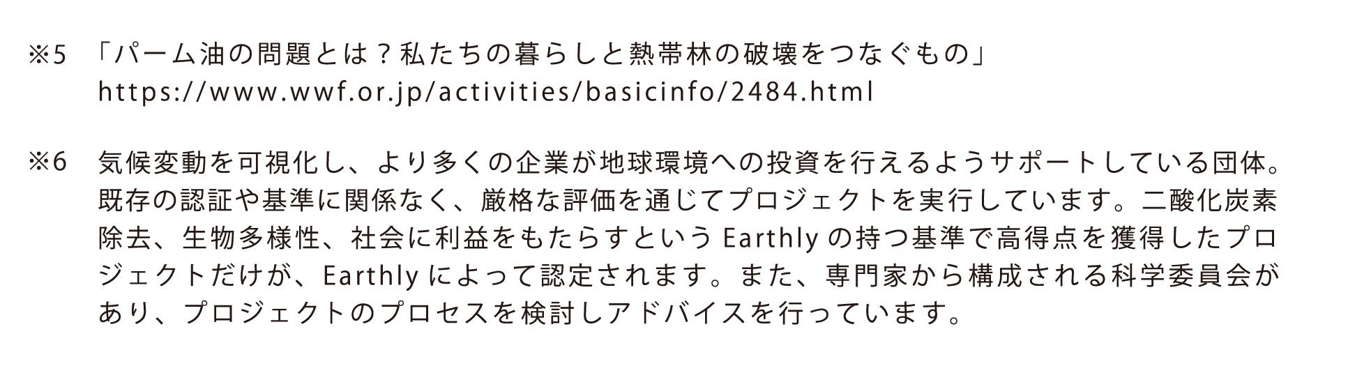 また、パームオイルは熱帯でのみ生産されるにも関わらず、汎用性の高さから世界中で需要が増え続けており、農地確保のために熱帯林、泥炭地、野生生物、そして人々にも深刻な影響をもたらしています(※5)。そのため、2023年末までに商品からパームオイルを除くことを目標に動いています。農薬を使用しないで育てられたオーガニックの作物は、従来の農業に比べて生物多様性が最大で50%向上します。EVOLVEはEarthly(※6)と協力して、アマゾンの熱帯雨林を保護。 839,000平方メートルの熱帯雨林に住む絶滅の危機に瀕している動物たちを救い、約22,000本の木を植えています。