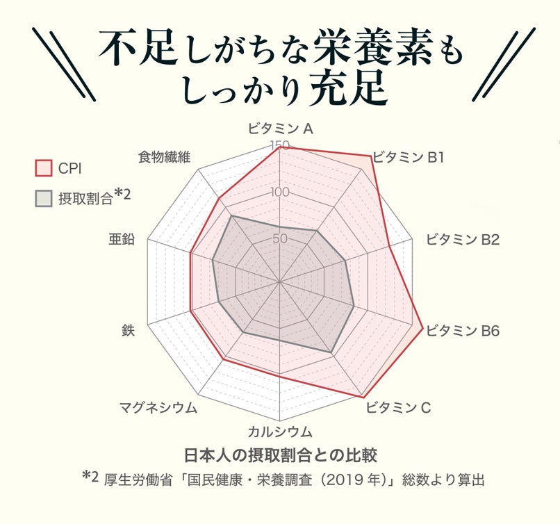 CPIプロテインの新シリーズ、「完全栄養食」は、忙しい現代人の健康をサポートするために開発されたプロテイン。1日に必要な30種類の栄養素の基準値の1/3以上をたった1杯に凝縮しており、バランスの取れた食生活を手軽に実現できるのが特長です。