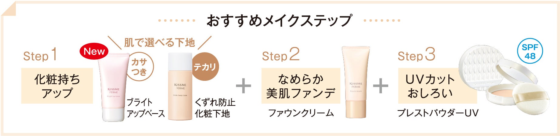 キスミー フェルムのファンデとあわせてお使いになると美しく仕上がります。