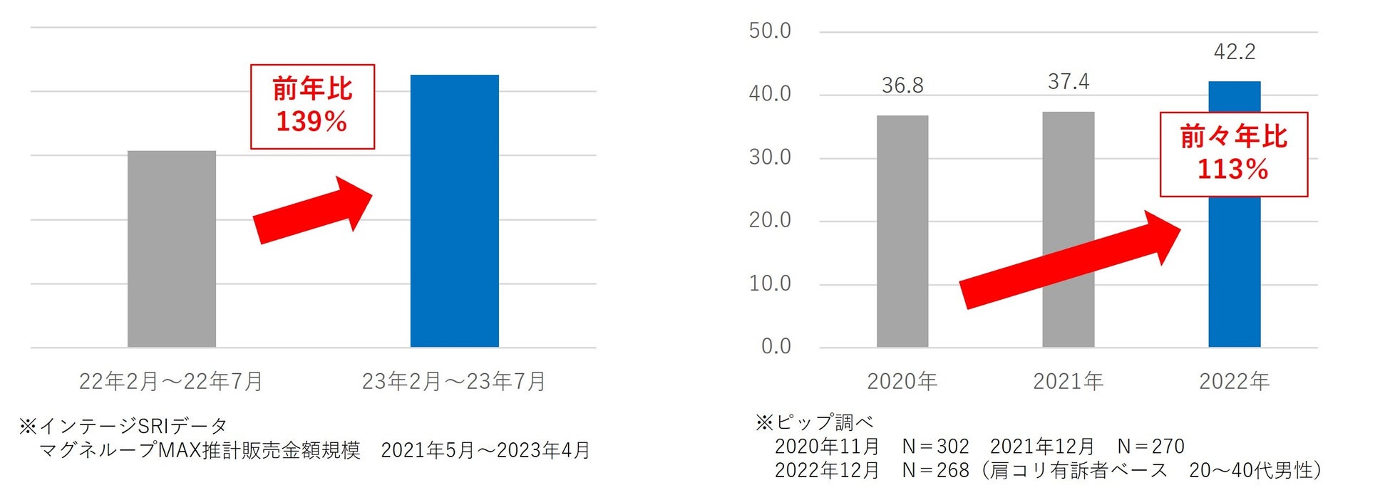 二桁成長で好調に推移しています<図1> 。その要因としては、近年の肩コリ症状の深刻化が背景にあるとされています<図2> 。