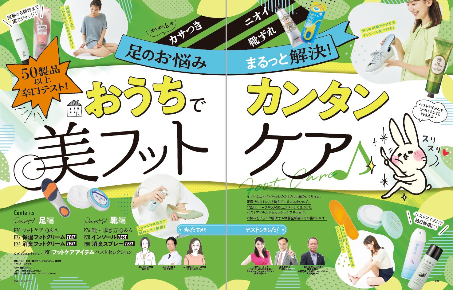 イヤ〜なニオイやかかとのカサカサ、脚のむくみなど、足周りのストレスを抱えている人は多いはず。本特集は、トータル50点以上テストして見つけたベストアイテムやお悩みをバッチリ解決する情報をお届けします!