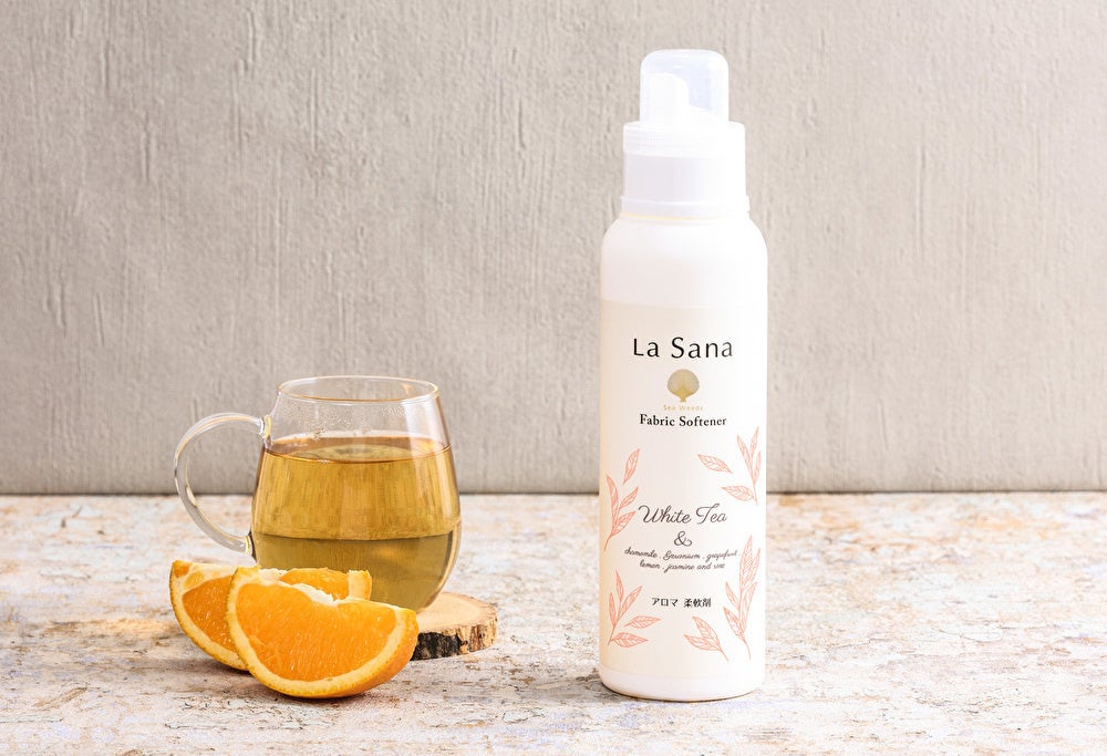 ホワイトティーは“美人のお茶”としても愛されており、生産量が少なく貴重なことからプレミアムティーとも呼ばれています。【しなやかで優雅な髪へ導くワンランク上の上質なヘアケア】がコンセプトの『ラサーナ プレミオール』初の香り限定品として、その貴重なホワイトティーを採用。 2020年2月の発売以来、多数の再販希望のお声をいただいている人気の香りはそのままに、新たに「ラサーナ アロマ 柔軟剤 ホワイトティーの香り」を新発売します。洗い流さないトリートメントのパイオニアであるラサーナは、トリートメント開発で培った技術を活かし、海藻のエキスと海洋由来の保湿成分が衣類の繊維内部まで浸透して元の潤いのある状態を維持する成分を配合。さらに繊維のほつれや毛羽立ちを修復するため、補修成分で繊維をコーティング。使って分かる実感品質をモットーに、トリートメント発想の柔軟剤を開発いたしました。毎日使うものだからこそ、肌への優しさ、地球環境への配慮はもちろん、さわやかでやさしく包み込む「ホワイトティーの香り」で優雅な心地よい1日をお届けできたらという想いを込め、新登場いたします。