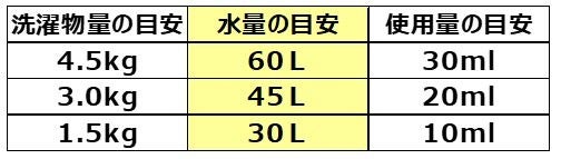 *ドラム式洗濯機の場合は洗濯物量の目安にしたがってください。お好みに合わせて使用量を加減してください。