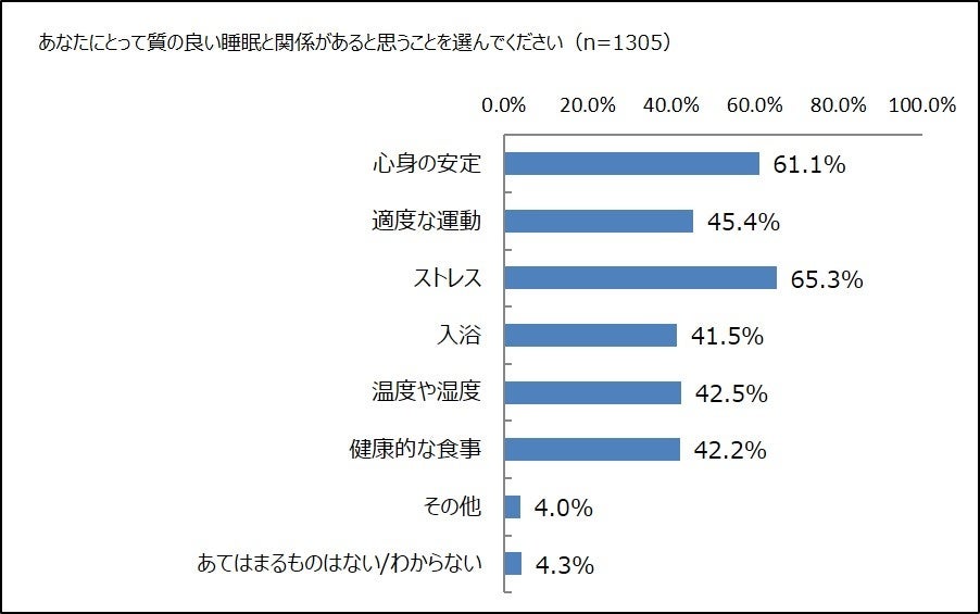 頻度を問わず、質の良い睡眠ができていると答えた人に、関連があると思うものを選んでもらいました。