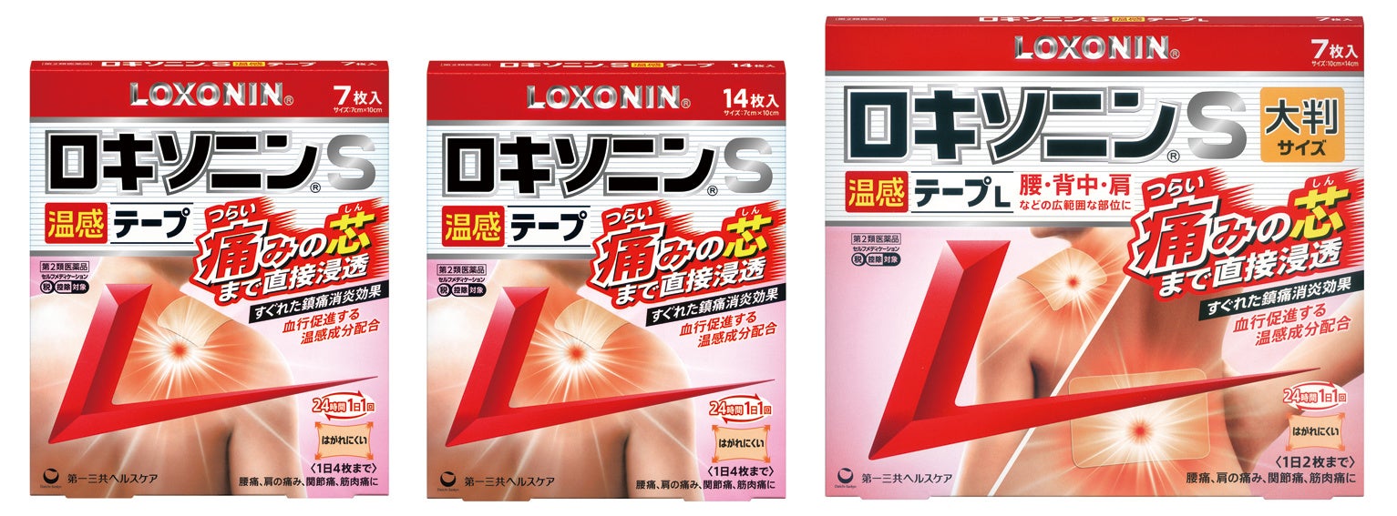 第一三共ヘルスケア株式会社(本社:東京都中央区、社長:吉田勝彦、以下「当社」)は、鎮痛消炎成分「ロキソプロフェンナトリウム水和物」を配合した「ロキソニン外用薬シリーズ」から新たに温感タイプの「ロキソニンS温感テープ」「ロキソニンS温感テープL」(いずれもOTC医薬品:第2類医薬品)を本年8月29日(火)に新発売します。