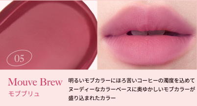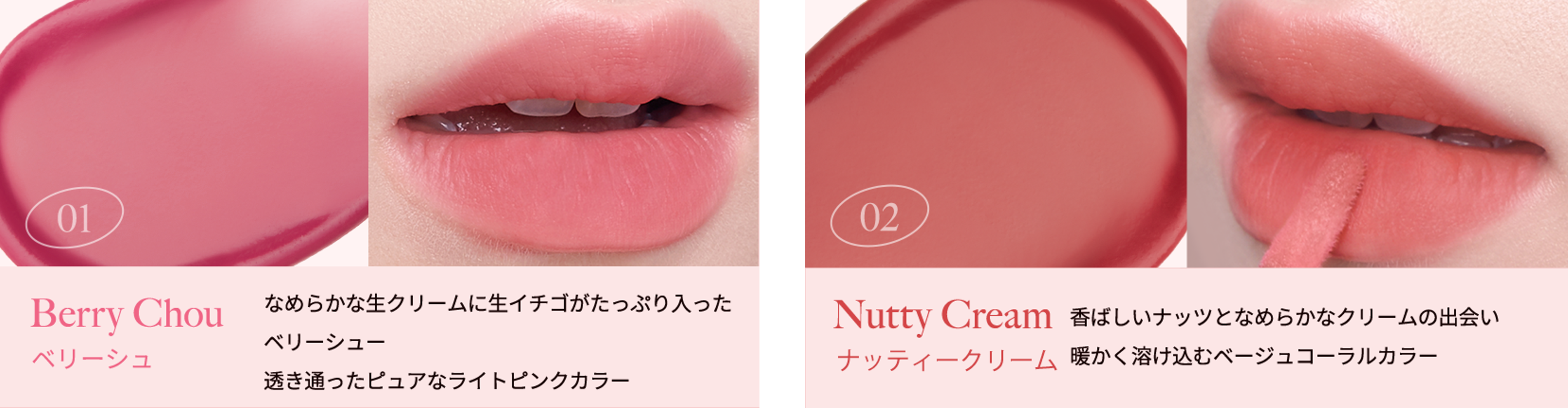 水分たっぷりのベルベットテクスチャーが唇に染み込み、ベルベットに仕上がる反転テクスチャー。