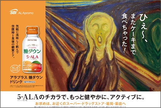 ※左:アラプラス 糖ダウン ドリンク×叫び(オスロ国立美術館/画家 エドヴァルド・ムンク)、中央:アラプラス 糖ダウン アラシア×真珠の耳飾りの少女(マウリッツハイス美術館/画家 ヨハネス・フェルメール)、右:アラプラス ゴールド 疲労感軽減×落穂拾い(オルセー美術館/画家 ジャン=フランソワ・ミレー)