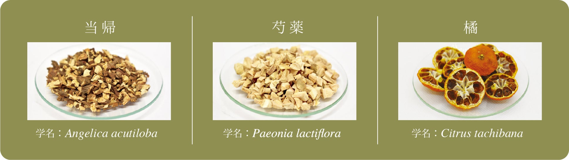 和美三美™-Wは、国内シェアとしては、わずか10%強と言われる貴重な国産生薬の中でも、生薬のルーツとなっている大和(奈良)の地で生産された大和生薬を用いて開発された抗老化美容成分です。大和物(やまともん)として非常に品質が高いとされる「大和当帰」「大和芍薬」「大和橘」の3種を素材として用いています(図1)。奈良県では2012年から生薬の生産拡大に向けた取り組み「漢方のメッカ推進プロジェクト」が立ち上げられており、弊社もこれに参画し、その取り組みの1つとして、和美三美™-Wの開発を通して、地域復興にも貢献して参ります。