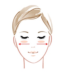 ●指の腹で小回りで目周り、大回りで眉間からこめかみまで、目周り全体に円を描くように広くなじませます。