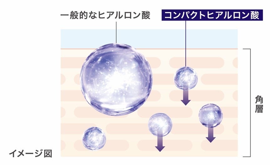 分子の大きいヒアルロン酸を約1/3に折りたたむ資生堂先端技術を活用したコンパクトヒアルロン酸※2を配合。うるおいを抱えこむコンパクトヒアルロン酸を角層深層へ浸透させることで、角層奥深くまでたっぷりとしたうるおいで満たします。