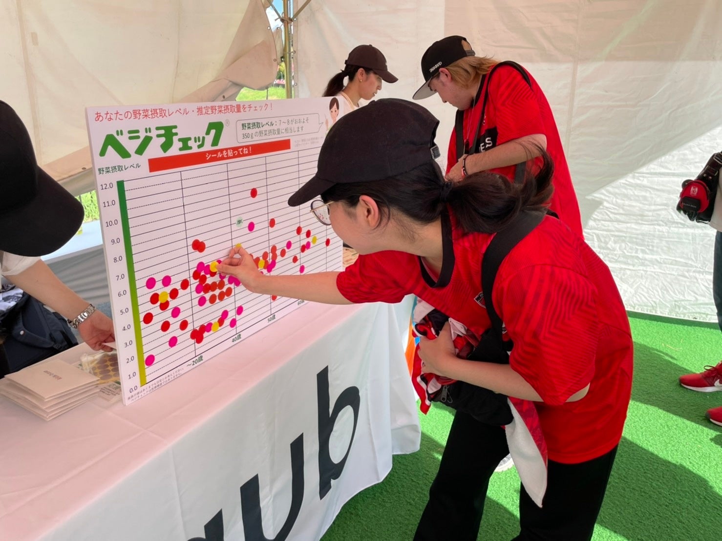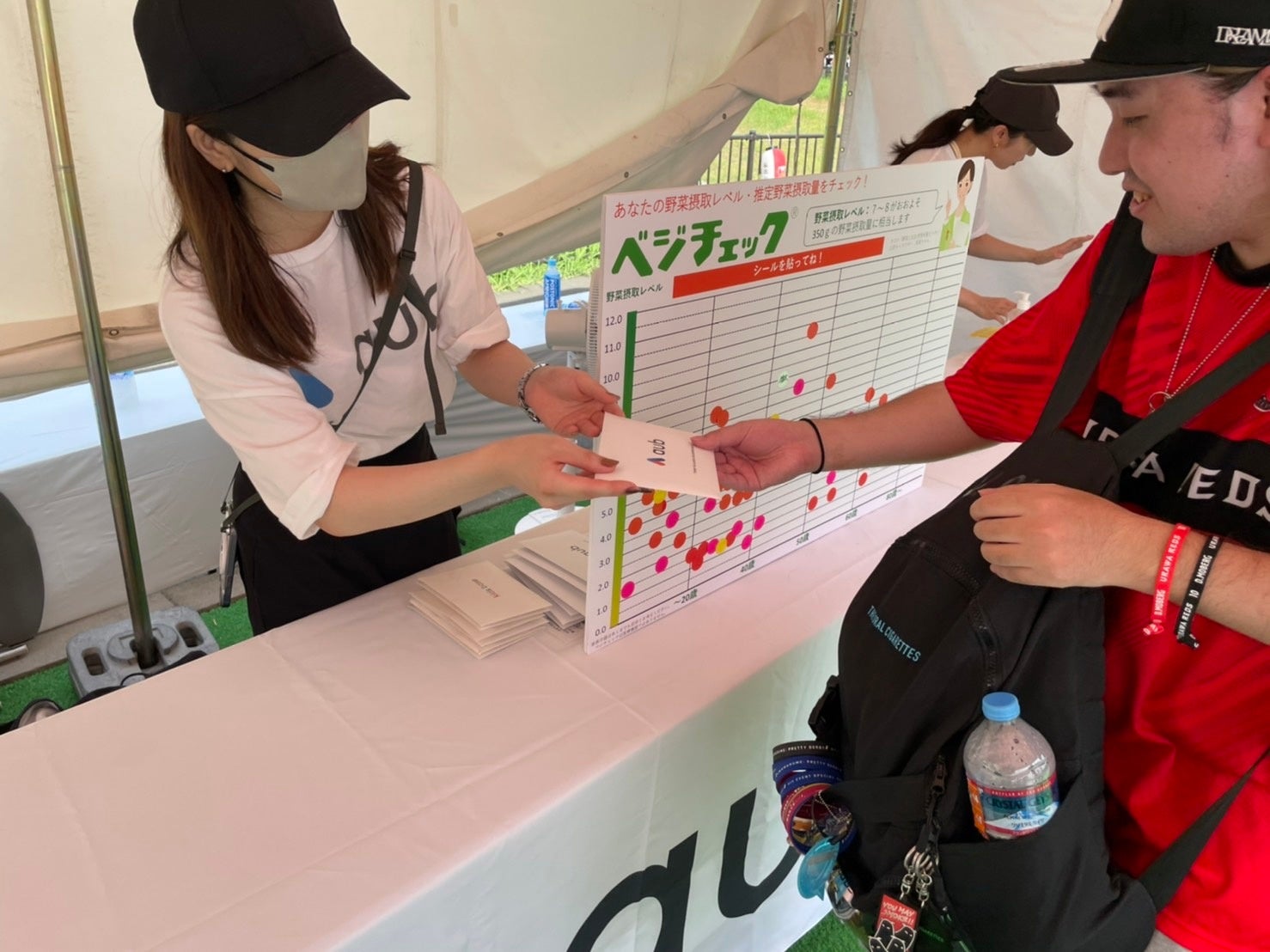 今回は、新たに野菜摂取量を測定する体験や、一人ひとりのサポーターと代表の鈴木が交流する時間、ツーショット写真撮影会、商品のサンプル配布などをコンテンツとして用意しました。