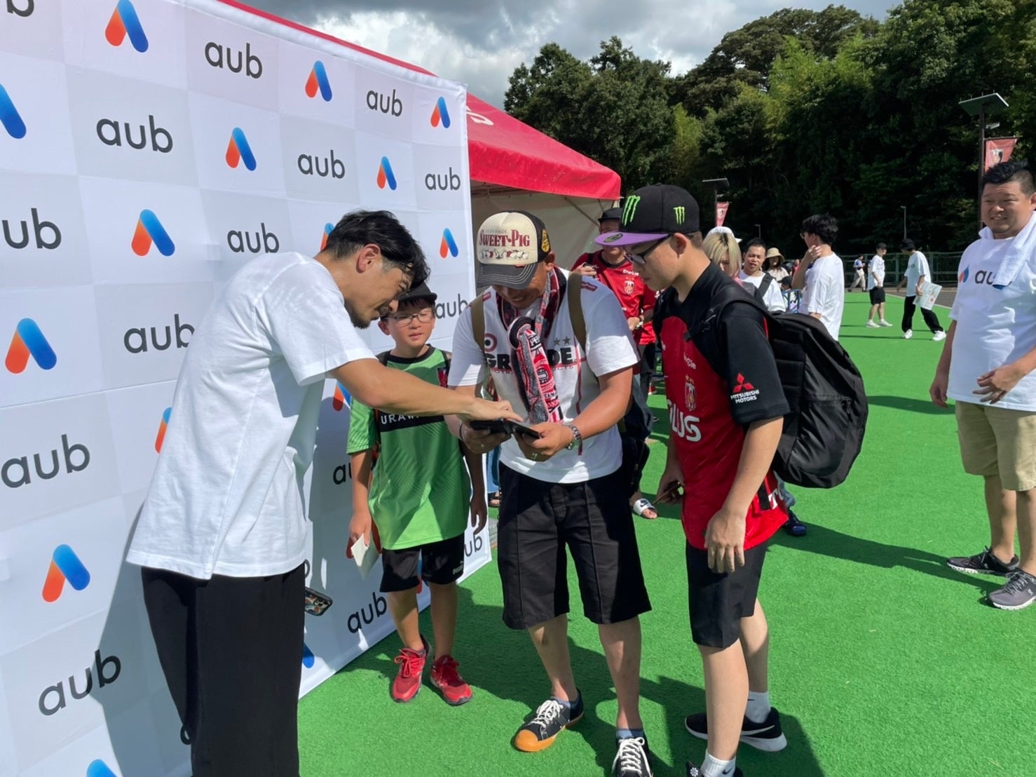 当日は試合開始前の15:00~19:00にイベントを開催し、約460名の方にAuBの体験コンテンツに参加いただきました。開始直後から終了間際まで多くの方にブースに集まっていただき、AuBブースやイベントの様子がSNSに多数アップされるなど、大盛況となりました。