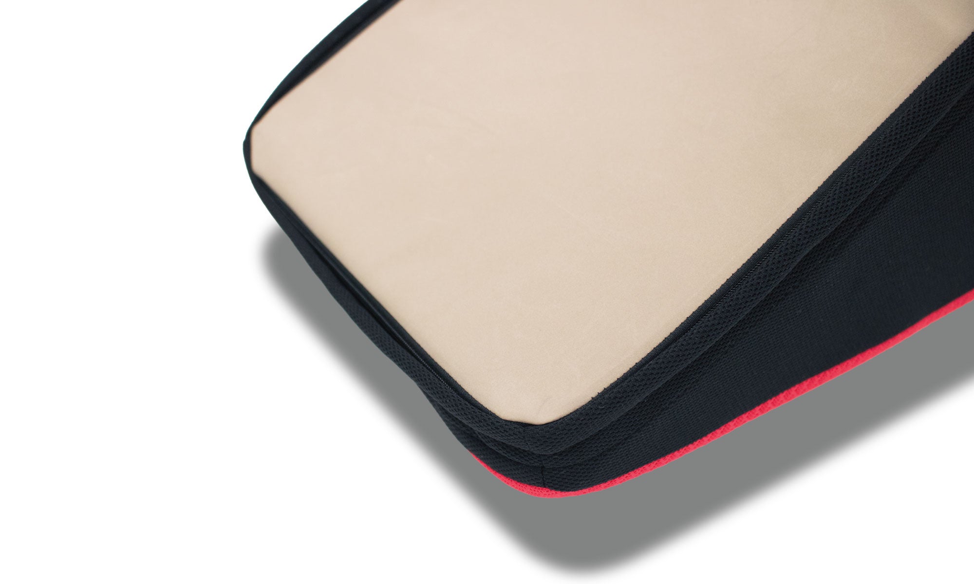 座ったままの運動なので、ひざに負担がかかりにくく、転倒やケガのリスクを減らせます。また、底部には土台となる中材と滑り止め生地で安心してエクササイズができます。