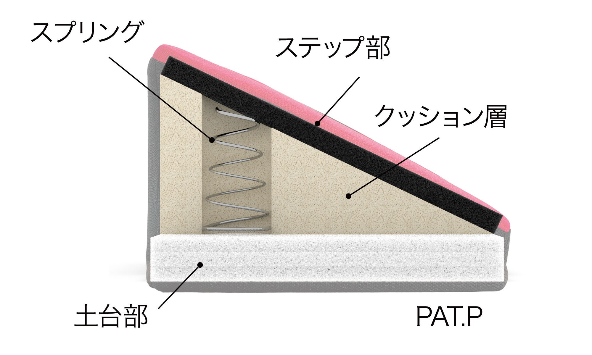 商品に内蔵されたスプリングの反発力が脚の筋肉を刺激し、短時間で効率よくエクササイズできます。