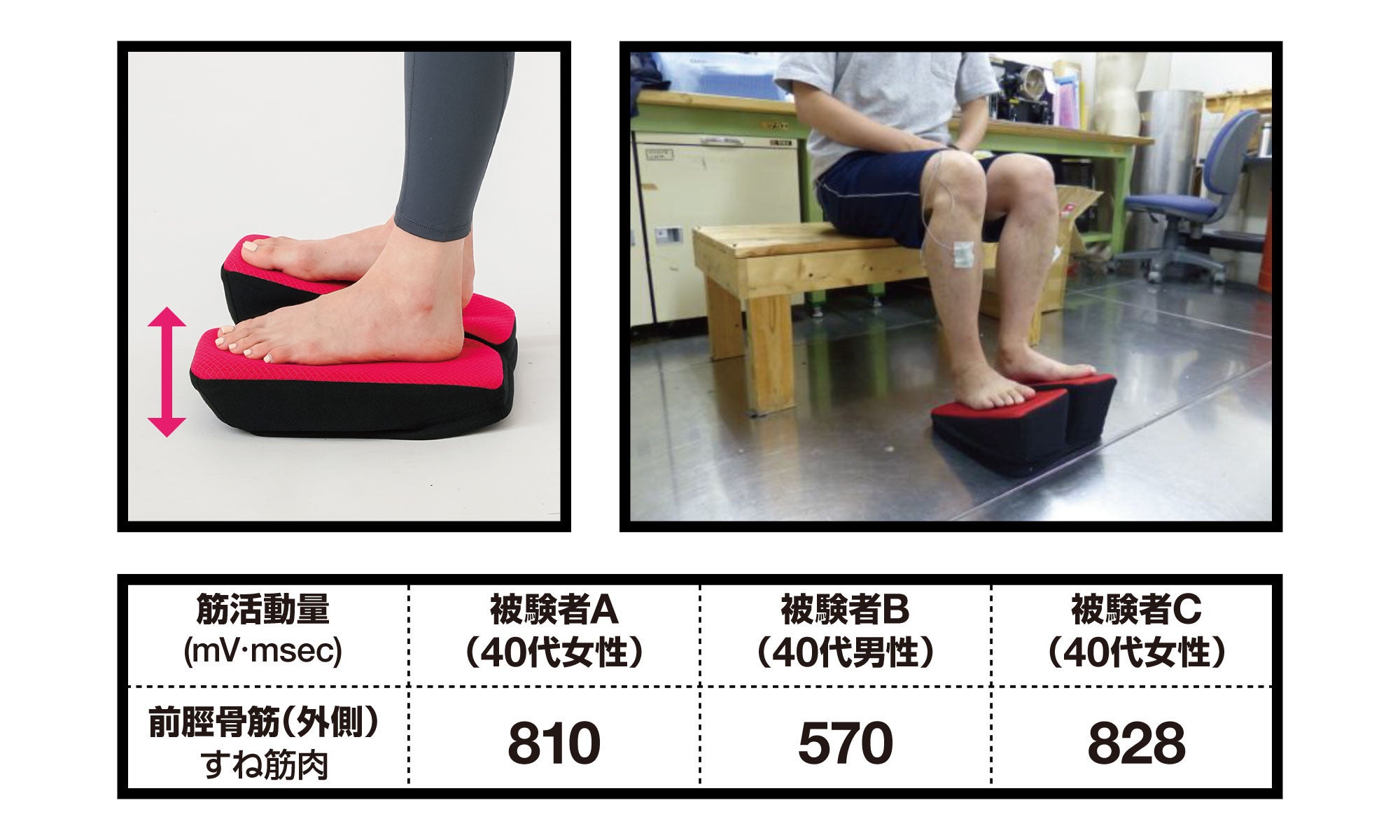 ①つま先上がりで使用:足首を動かすことで、つま先がしっかり上がるようになり、すねが鍛えられます。