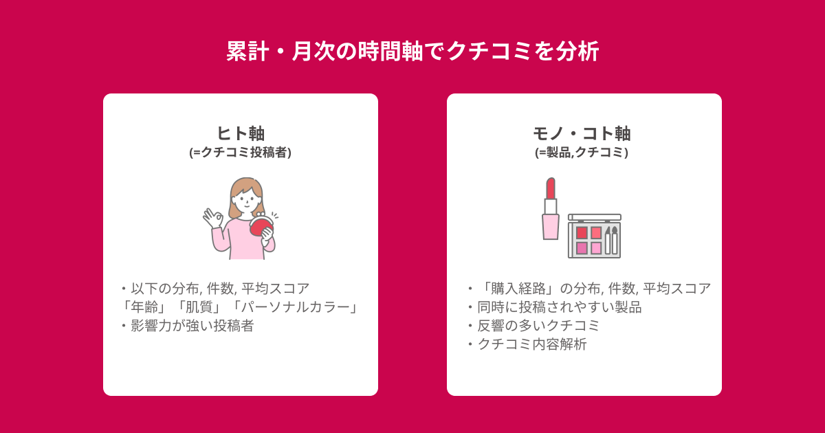 ②モノ(=製品)・コト(=クチコミ内容)軸での分析