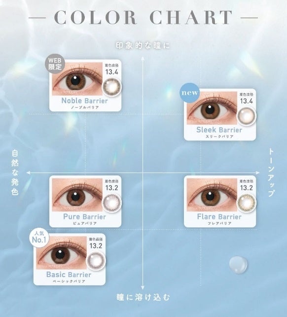 自然な美しい瞳になれるようにデザインやイメージごとに着色直径を変えた レンズラインナップ。