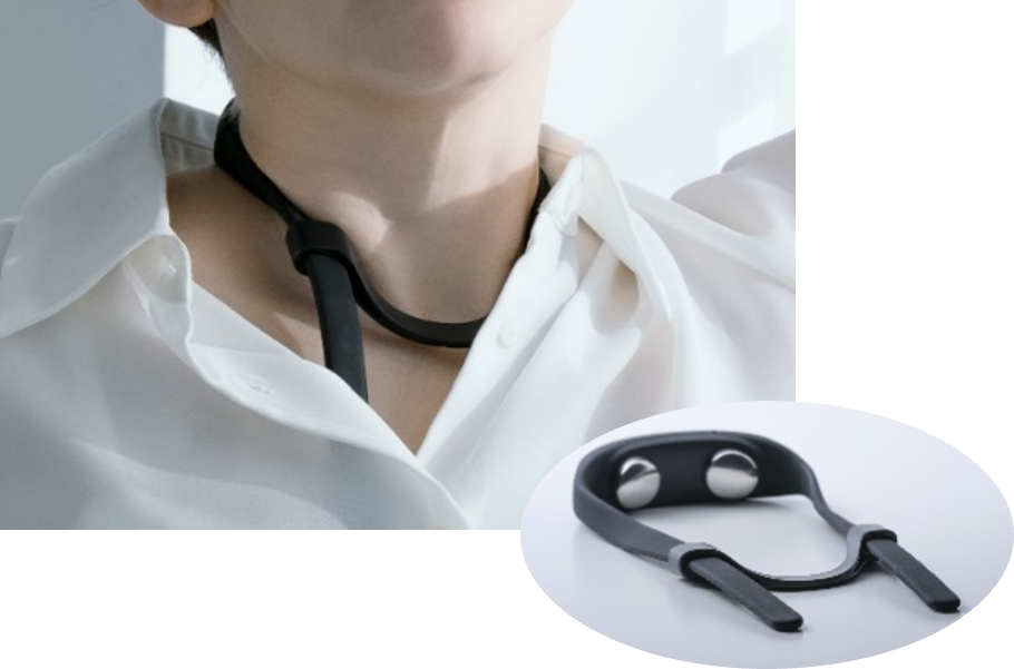 首の太さに合わせて調節が可能。装着中にベルトがめくれて外れないように、末端までマグネットが入っています。
