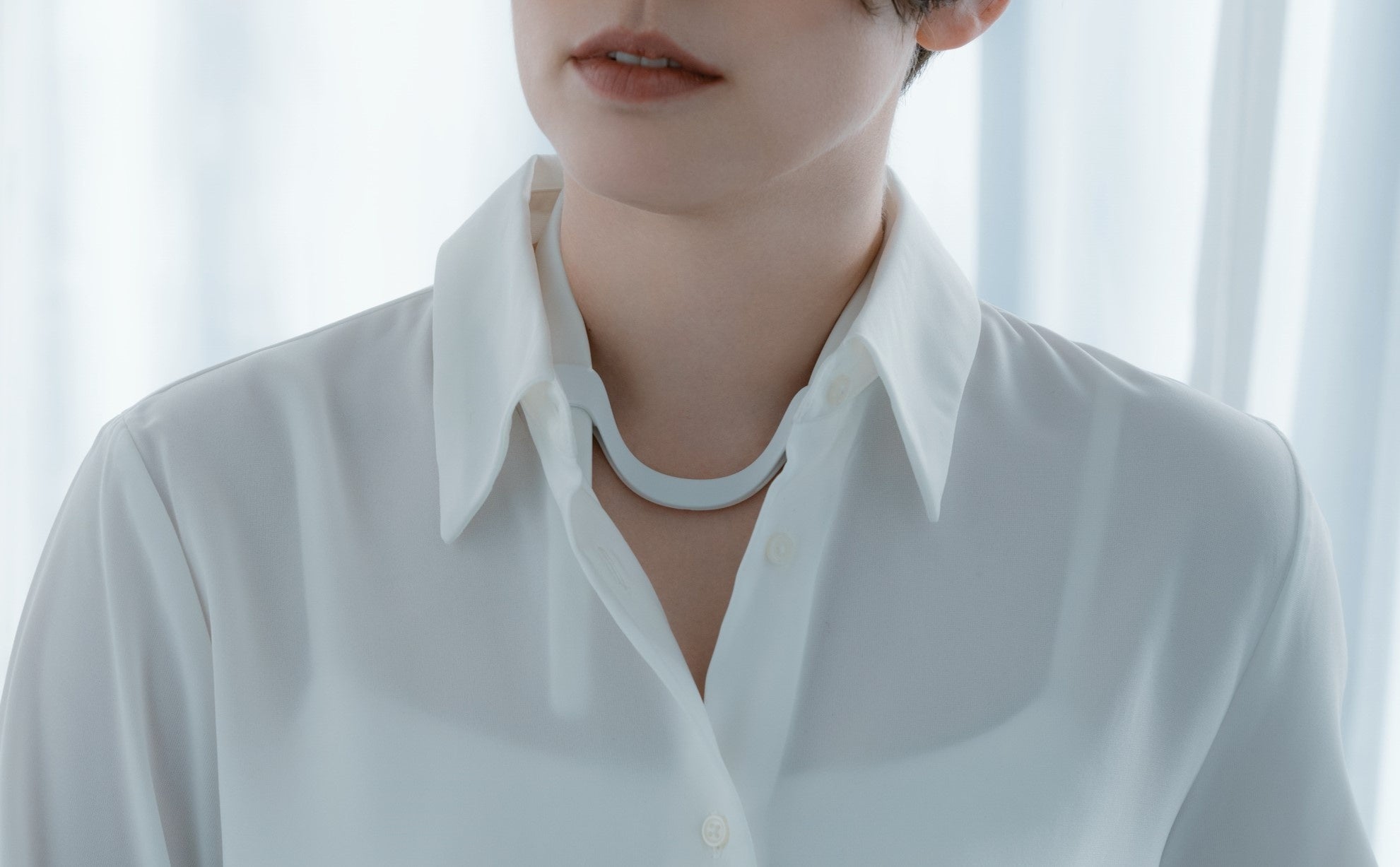 約90gという軽量なボディなので、いつでもマッサージが可能。本体もコンパクトで、Yシャツの襟に隠れるほどのサイズのため、人目を気にせずマッサ-ジができます。