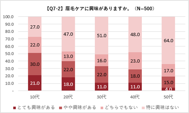 眉への「投資額」「関心」「重要視」「関心の高まり」は「10代・20代」がトップ!