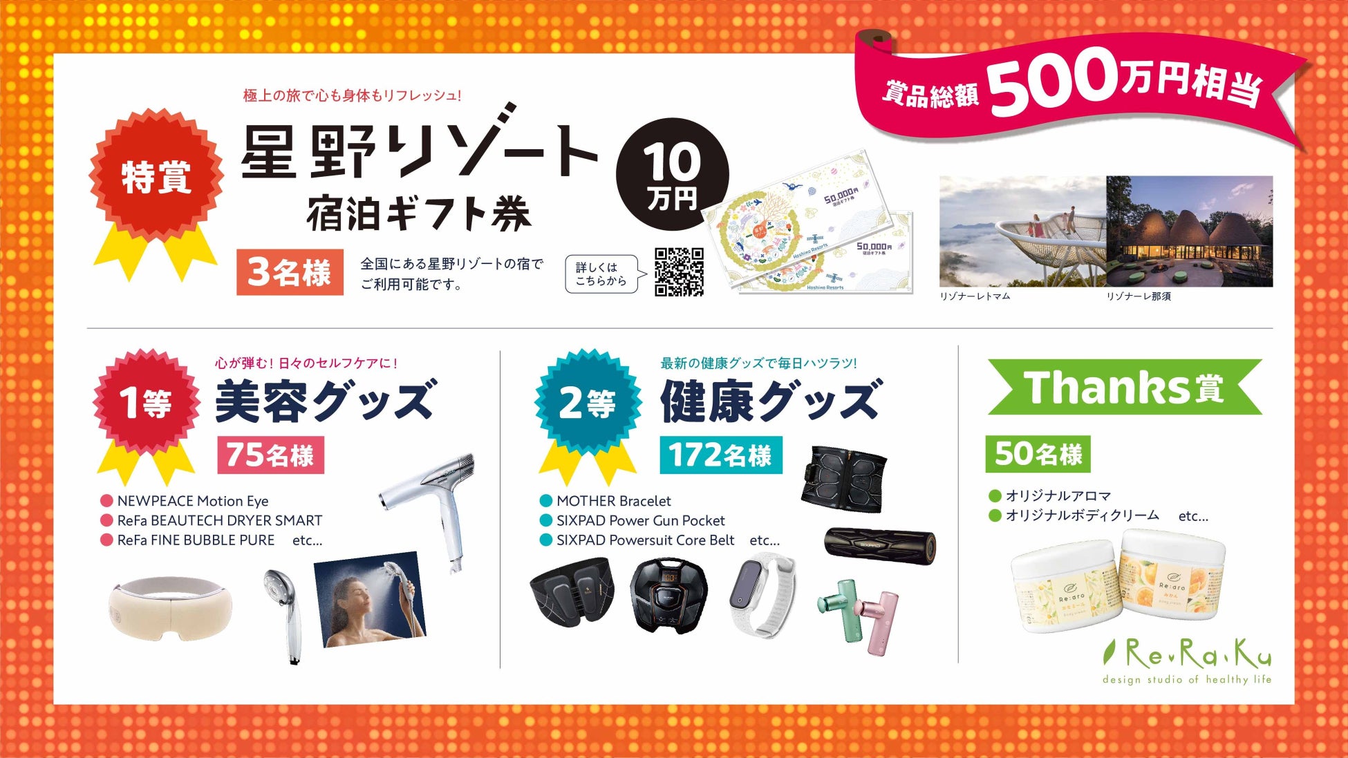 Re.Ra.Ku グループ各店舗とサービスサイトに当選者の番号を掲載いたします。