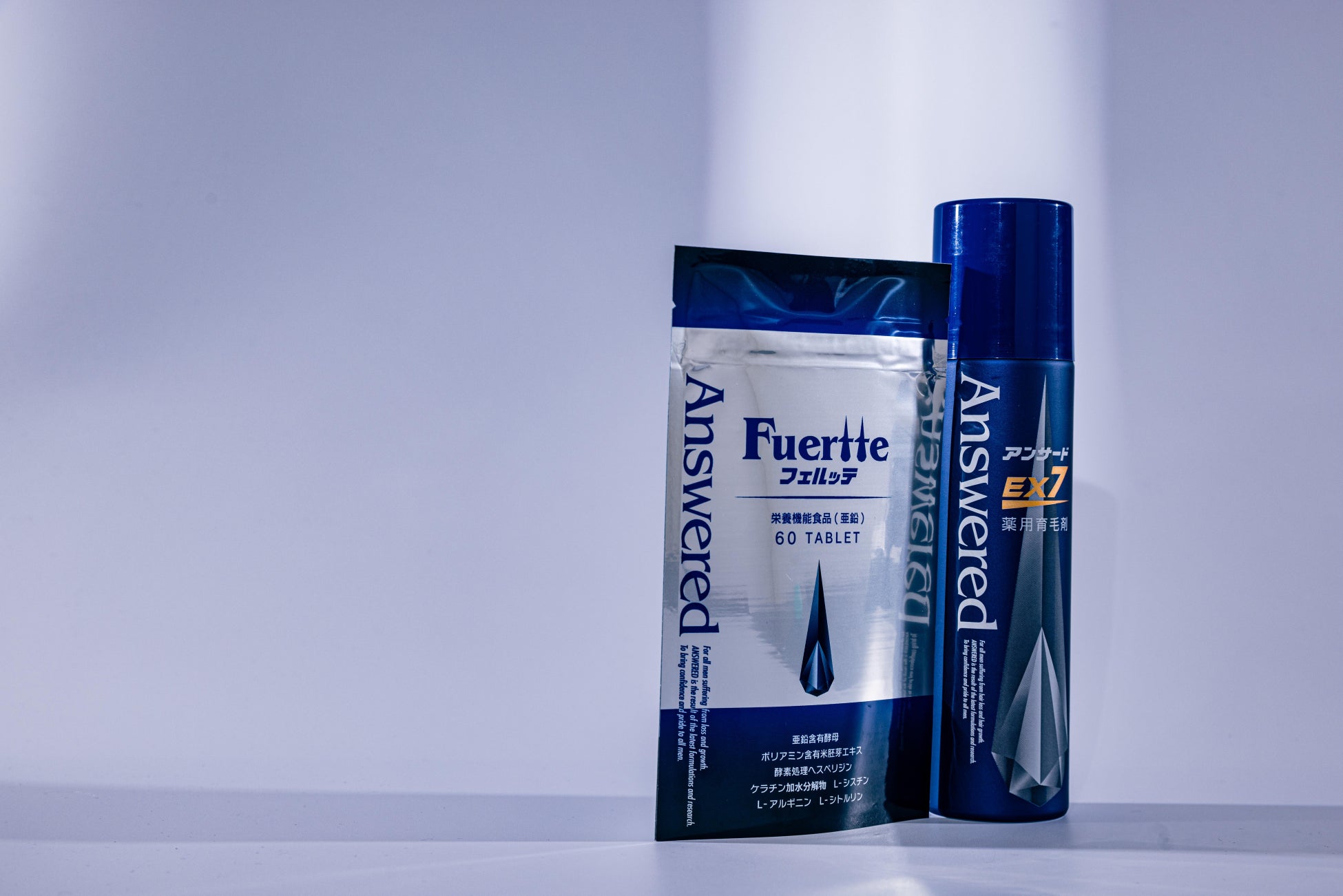 「薬用育毛剤Answered EX7」は外側から育毛ケアをする商品です。ただ、薄毛は頭皮環境だけでなく、生活習慣や栄養不足によっても引き起こされます。頭皮のケアと同じくらい内側からのケアも大切だと考え「Fuertte」の開発に至りました。