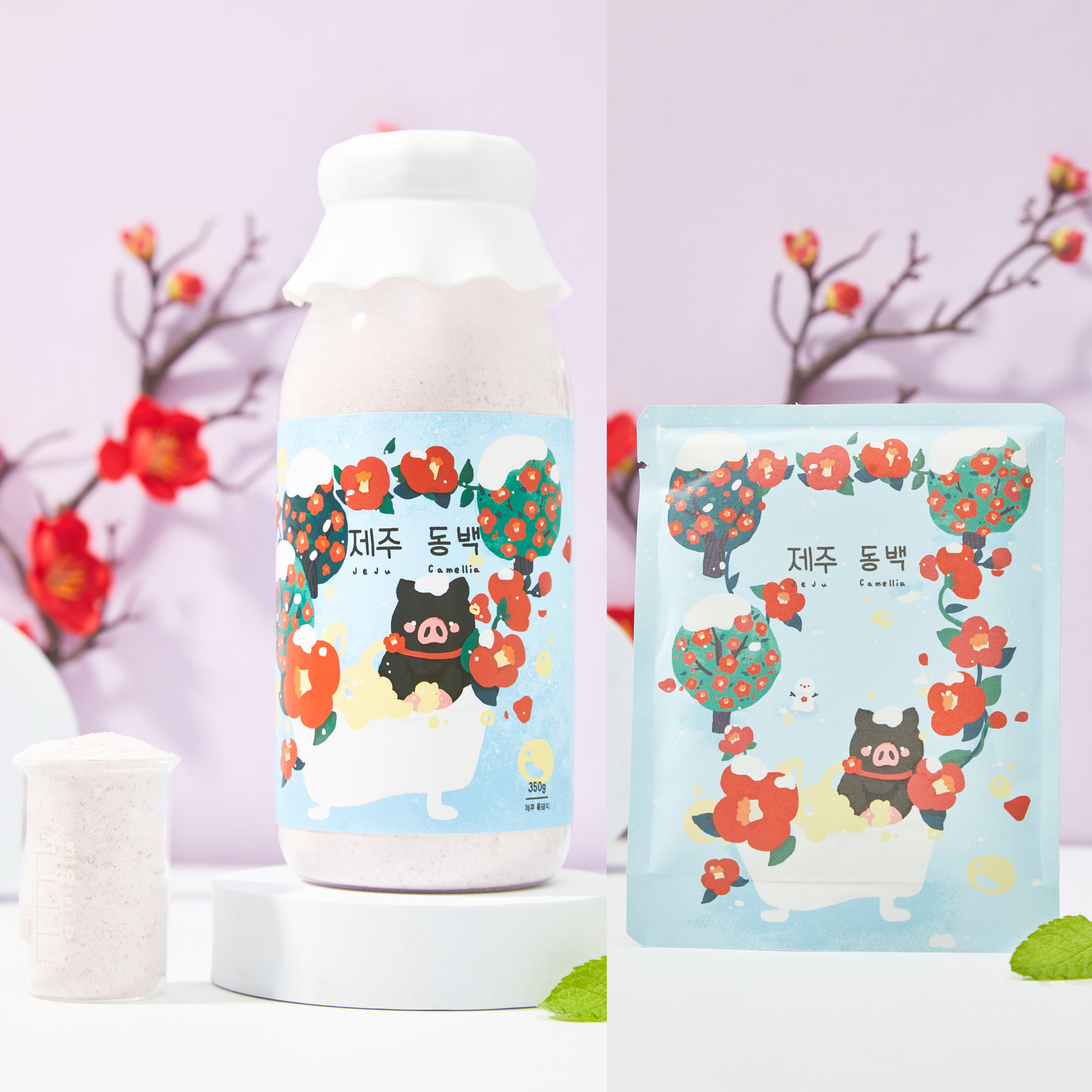 雪化粧の済州に咲く、美しい椿の花をイメージしたパッケージ。