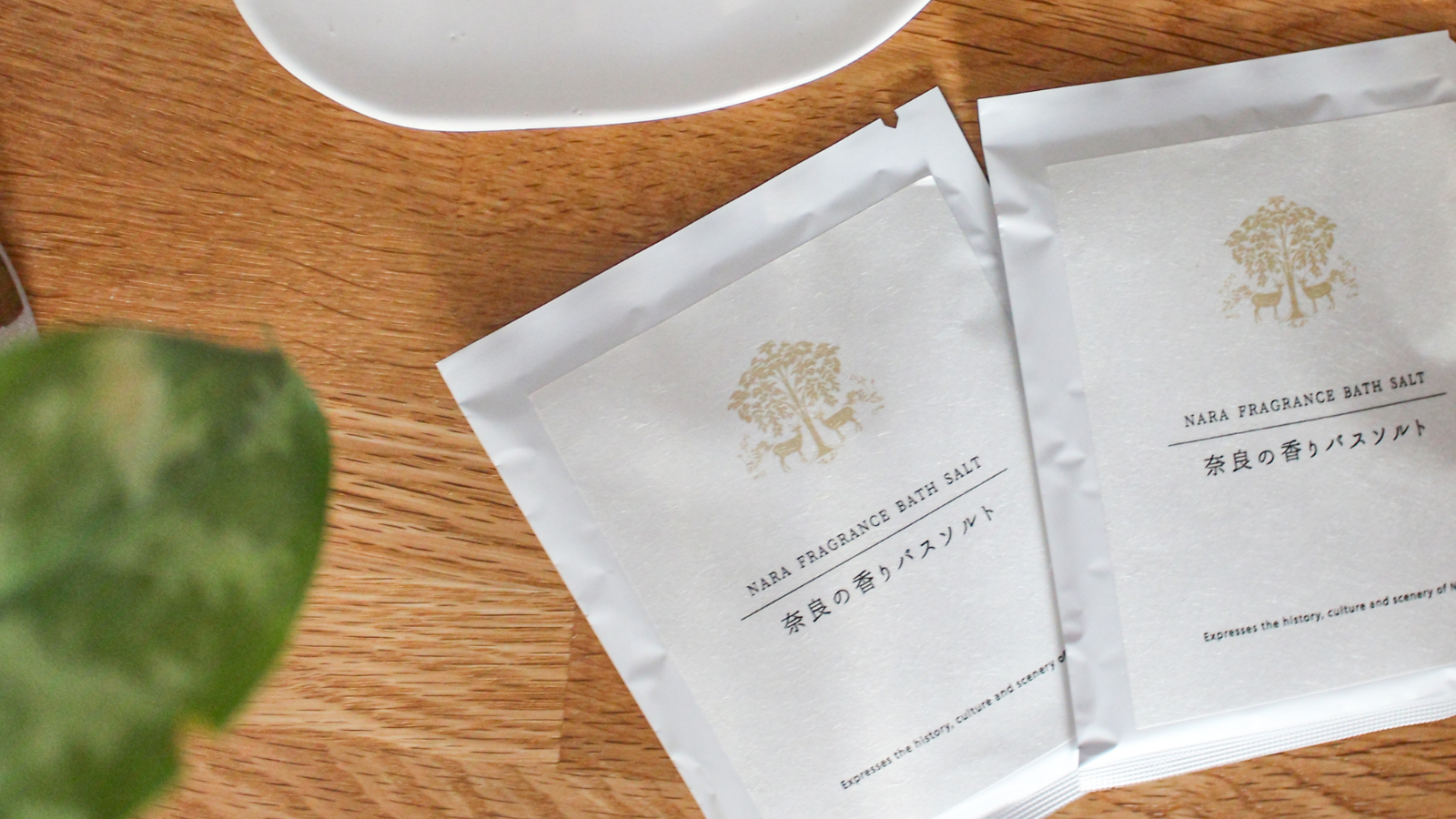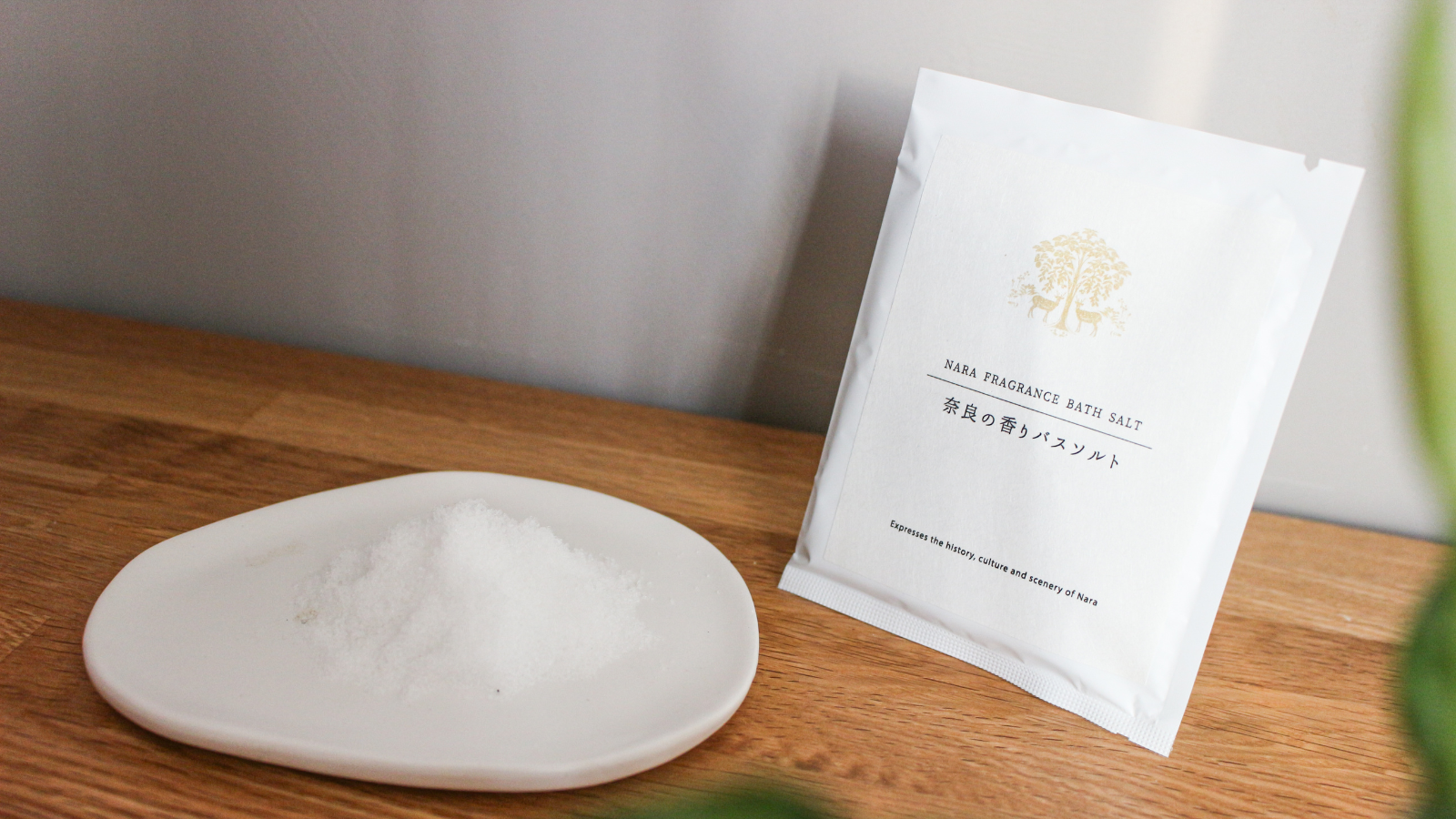 奈良の香りバスソルトは、肌を健やかに保ち、しっとりと潤いを与えます。また、吉野檜、ミント系、柑橘系の天然アロマオイルが配合された落ち着きのある上品な香りが、リラックスでラグジュアリーな空間を演出します。