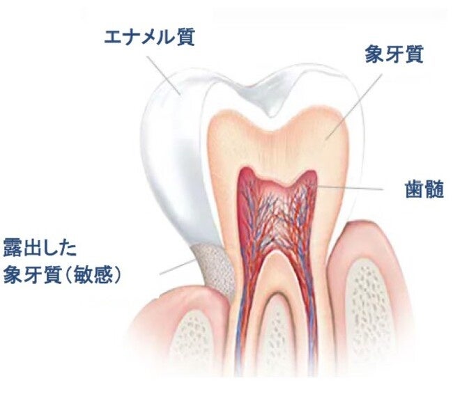1. 歯のエナメル質がすり減るなどの原因により、象牙質が露出する