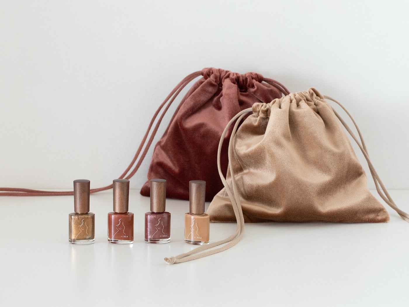 1:ネイルポリッシュcarob / cinnamonと、petite bag cinnamonの3点セット。