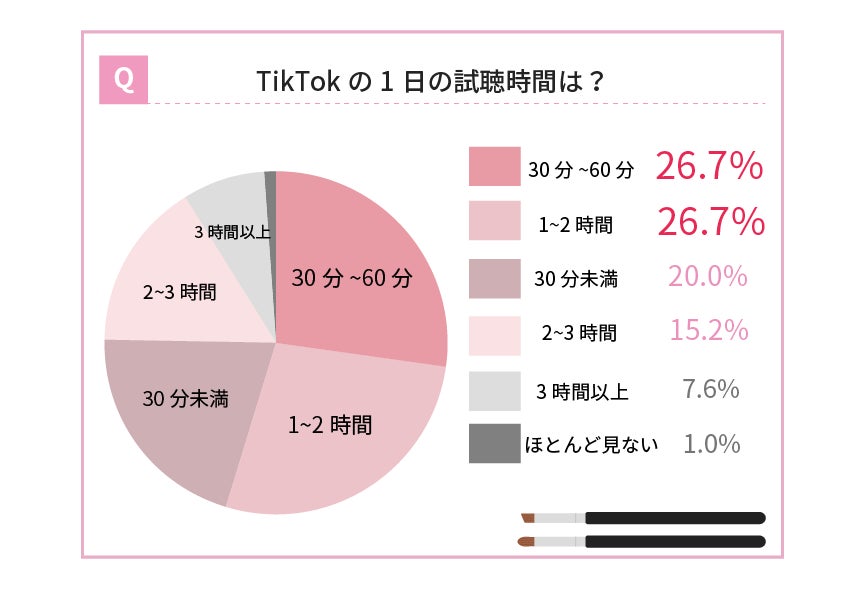 •  1日当りのTikTok視聴時間は「30分~1時間」及び「1時間~2時間」が最多