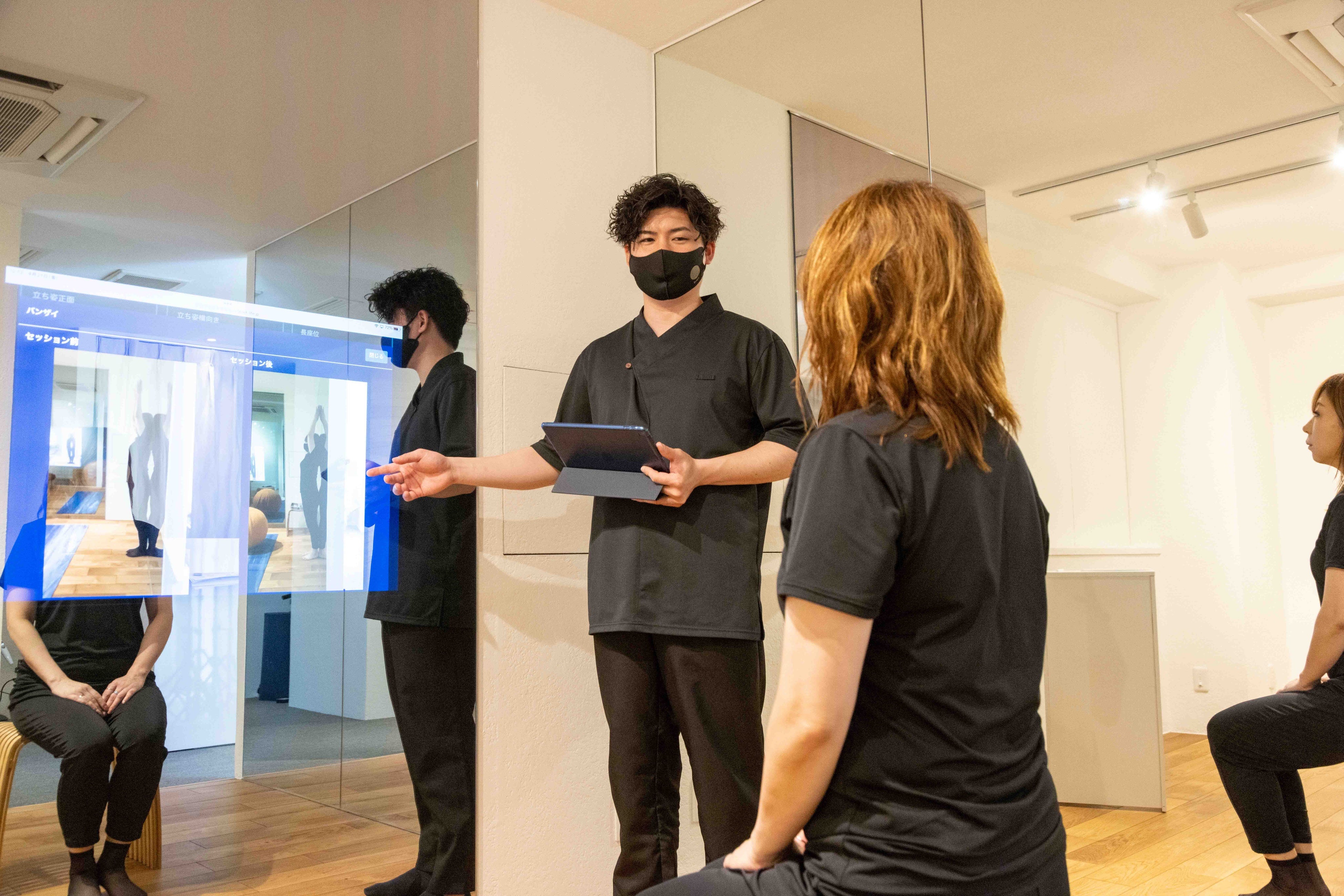理学療法士が独自開発した日本で唯一のプログラムで、身体の本質的な課題を数値ベースで見える化。最新技術のミラーディスプレイも導入し、施術前後で自分の身体がどう変わっていったかも共有します。理想的な数値を目指すべく、一人一人に最適なアプローチを行います。