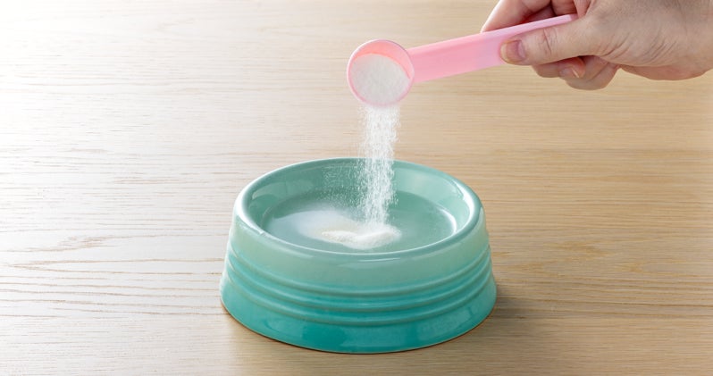 従来商品はタブレットタイプでしたが、より多様な犬種や年齢に対応できるよう、パウダータイプにリニューアルしました。人気のチーズ味はそのままに、ドッグフードに入れたりお水に溶かしたりと、様々なシーンでお使いいただけるようになりました。