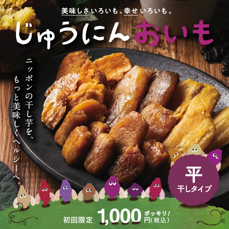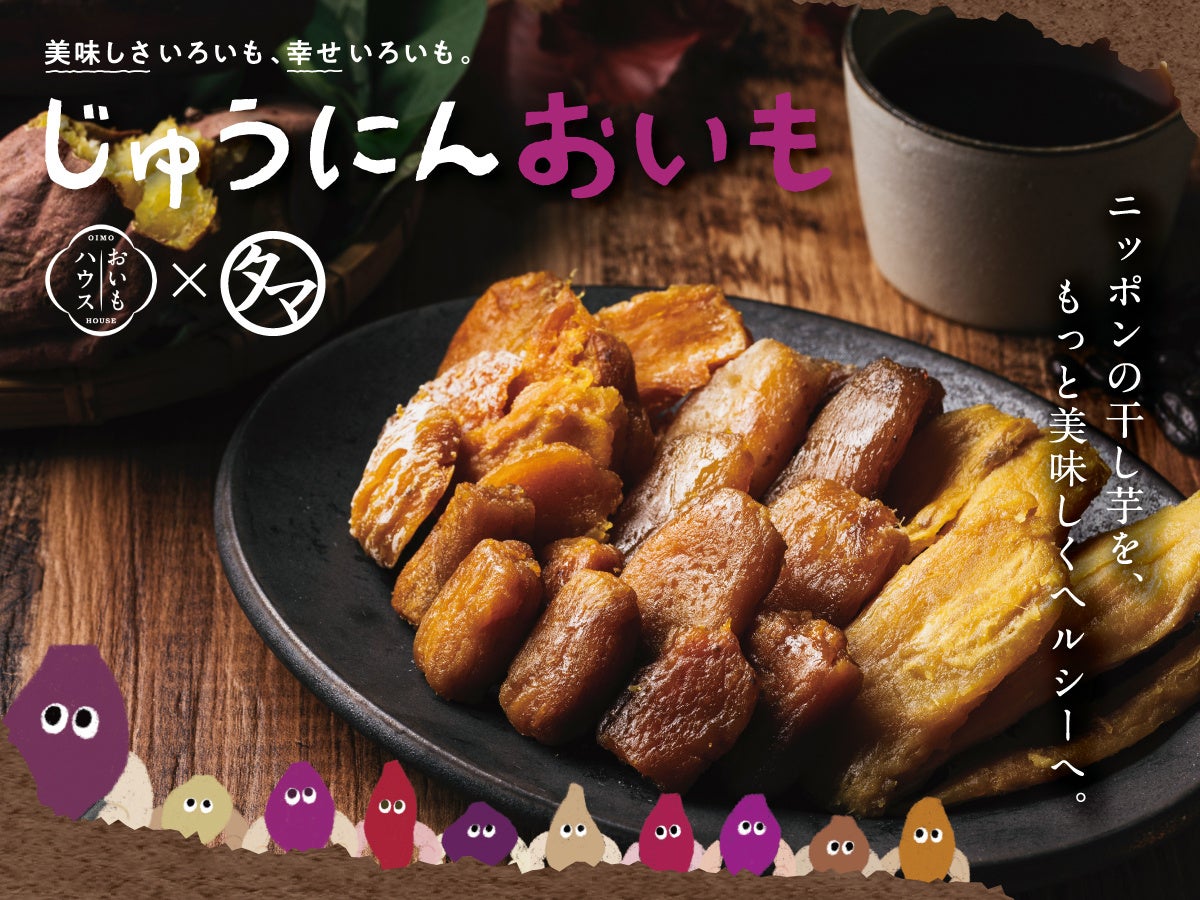 干し芋需要が高まるなか、美容・健康にも嬉しい干し芋の味わいを、もっと美味しく、豊富に楽しんでほしいという想いから、さつま芋の持つ個性や、まだ市場では珍しい”焼き”干し芋という点に注目。古くからさつま芋加工を専門とするおいもハウスの協力のもと、干し芋の質はもちろんのこと、多くの皆様に手にとって頂けるよう、パッケージにもこだわりぬいた、プレミアムな焼き干し芋が完成しました。