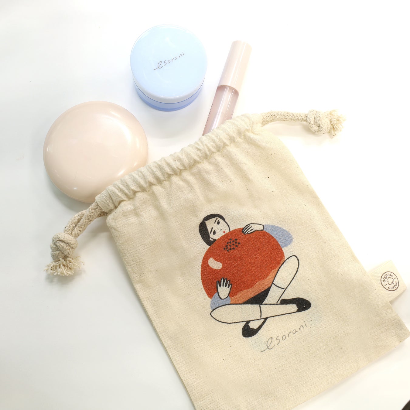 そんな「あんぱん」に想いを馳せ、“ものごとの奥行きを味わいたい”、“手仕事感のある、温かみを感じるものが好き” そんな方にesoraniの商品を手に取ってもらうきっかけを作れたら、という思いからこのコラボのノベルティ巾着『あんぱん袋』が誕生しました。