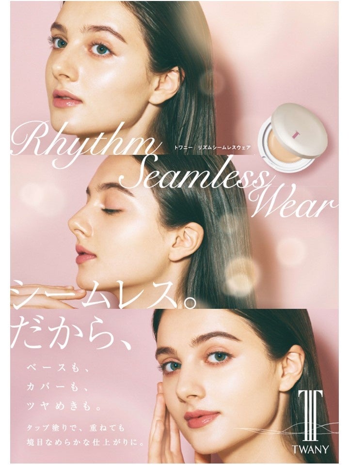 「トワニー リズムシームレスウェア」は、今年3月に発売した、「くすみなどの肌の色悩み」にアプローチする化粧下地・ファンデーション「トワニー リズムカラーウェア」に続き、ツヤ・色・質感を自由に着替える発想で、服を着替えるようにレイヤリングを楽しめるベースメイクシリーズ第2弾の商品です。今回は「色ムラの悩み」に着目し、化粧下地・ファンデーション・コンシーラーとして、1品でも他のベースメイクと重ねても使え、ライト〜フルメイクに対応できる、オールラウンダーなアイテムとして開発しました。重ね塗りしても厚塗り感なく境目なめらかに仕上がるツヤ感ベースメイクアイテムです。