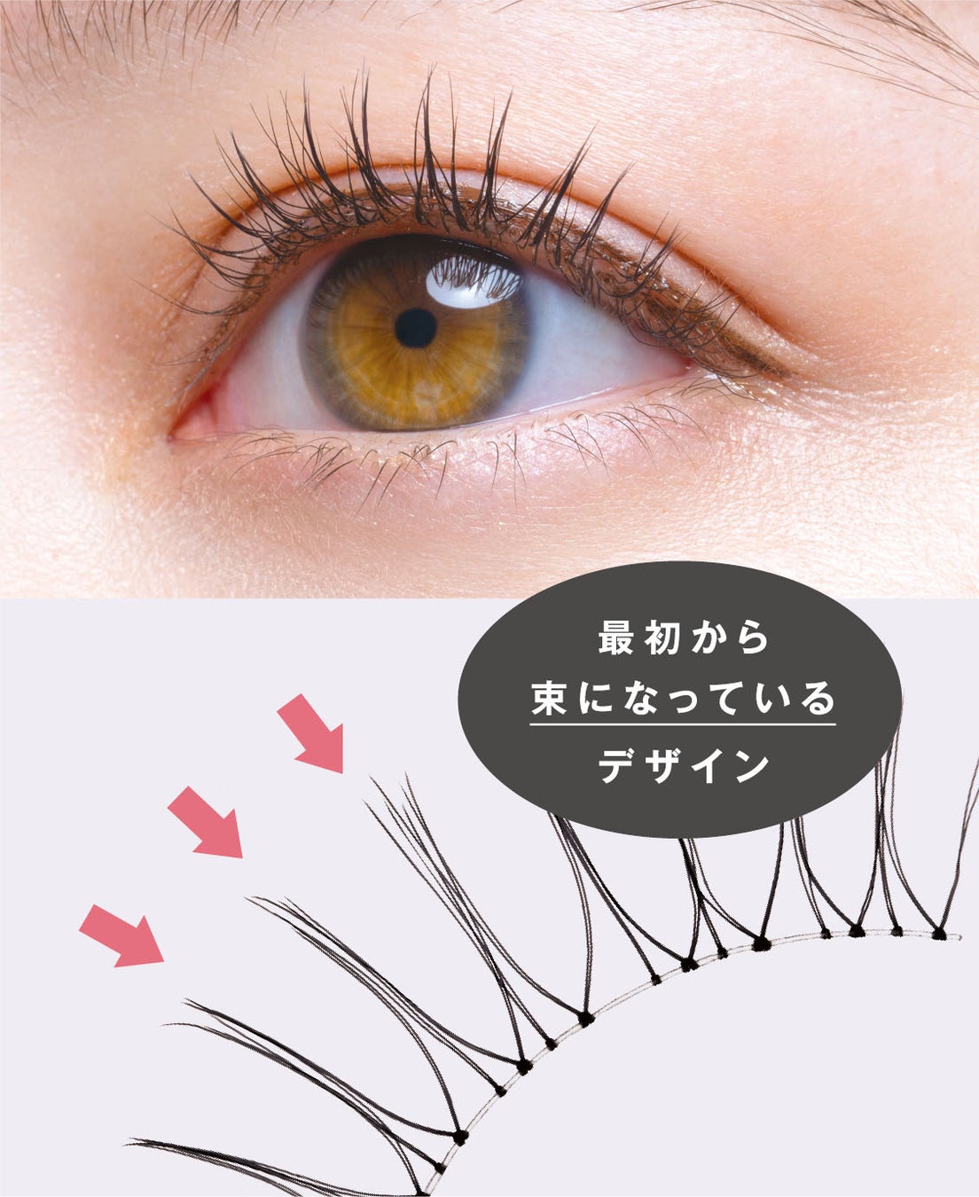 まつげを強調してパッチリとした目元を演出する “束感まつげ”は、Z世代から人気に火がつき、今や年代を問わずアイメイクのトレンドになりつつあります。束感まつげにするには、マスカラとピンセットを使って自まつげを束ねて作るやり方や、部分用つけまつげを使う方法、サロンでまつげエクステンションを施術してもらう等の方法がありますが、どれも“自まつげの長さと量” が必要で、その上“手間”がかかるものばかり。自まつげの少ない方や不慣れな方にとっては、ハードルの高いアイメイクの一つでした。